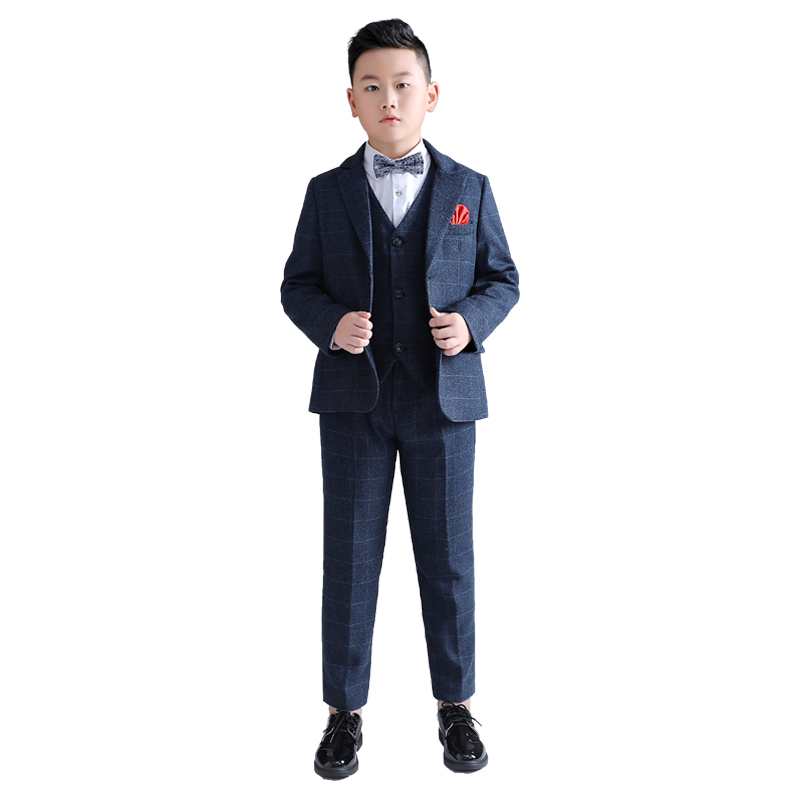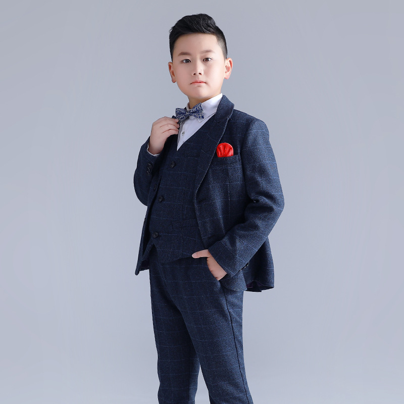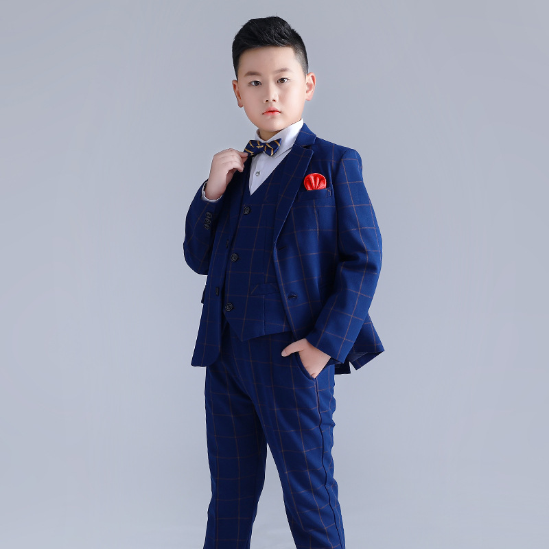 Children's dress chubby new boy piano host performance costume students plus fertilizer plus size plaid suit