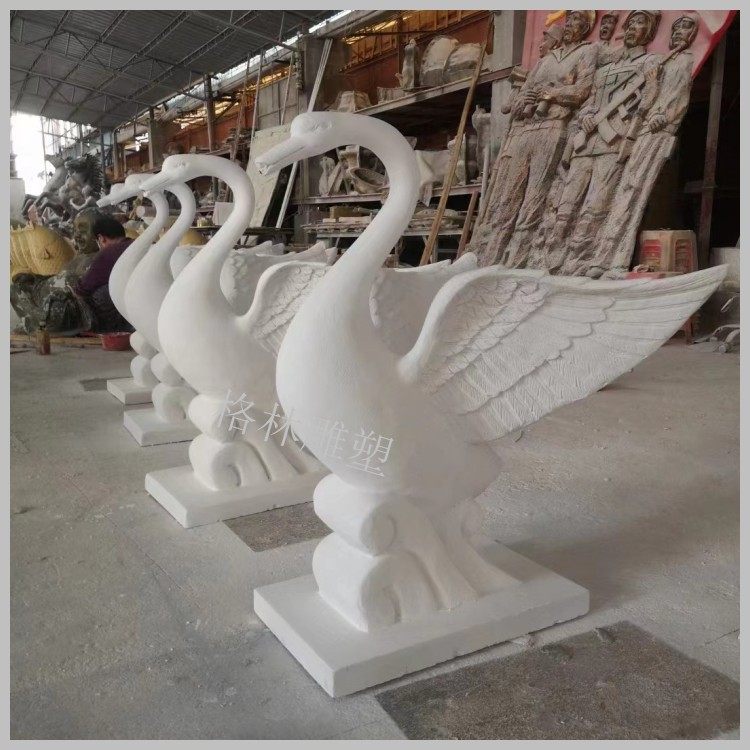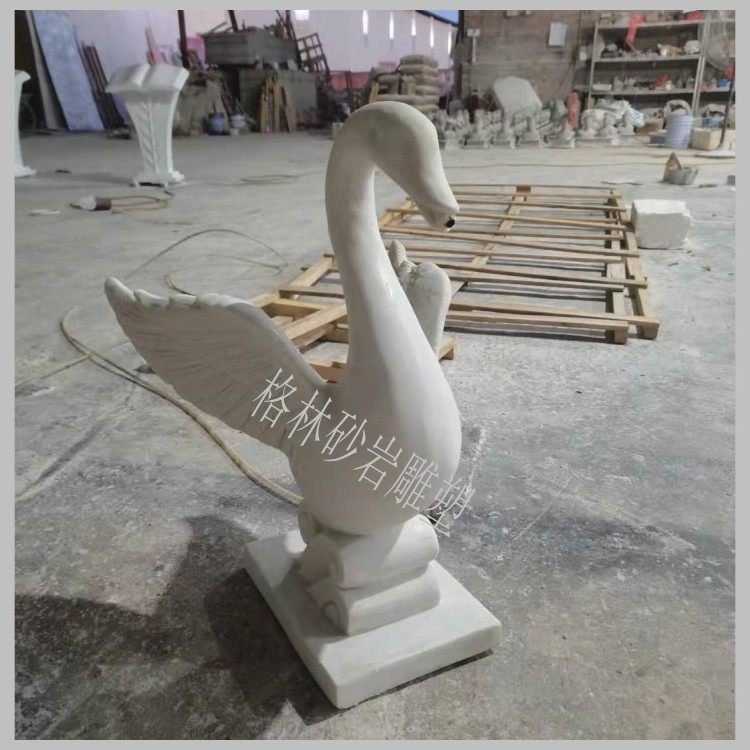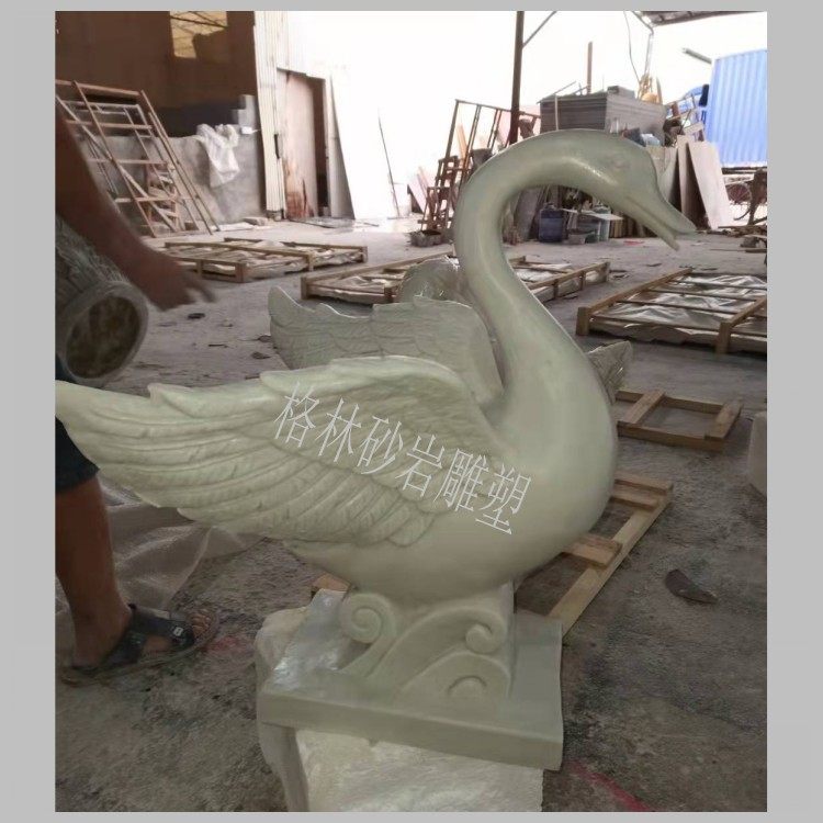 Pure hand engraving sandstone round carved swan sculpture European-style fountain outdoor waterscape GRP large spray pool-Taobao