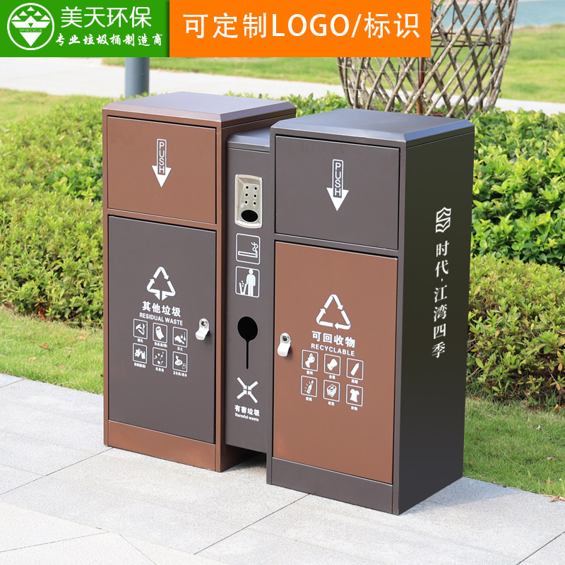 Customized 201 stainless steel trash can outdoor outdoor stainless steel sorting peel box large sanitation trash can