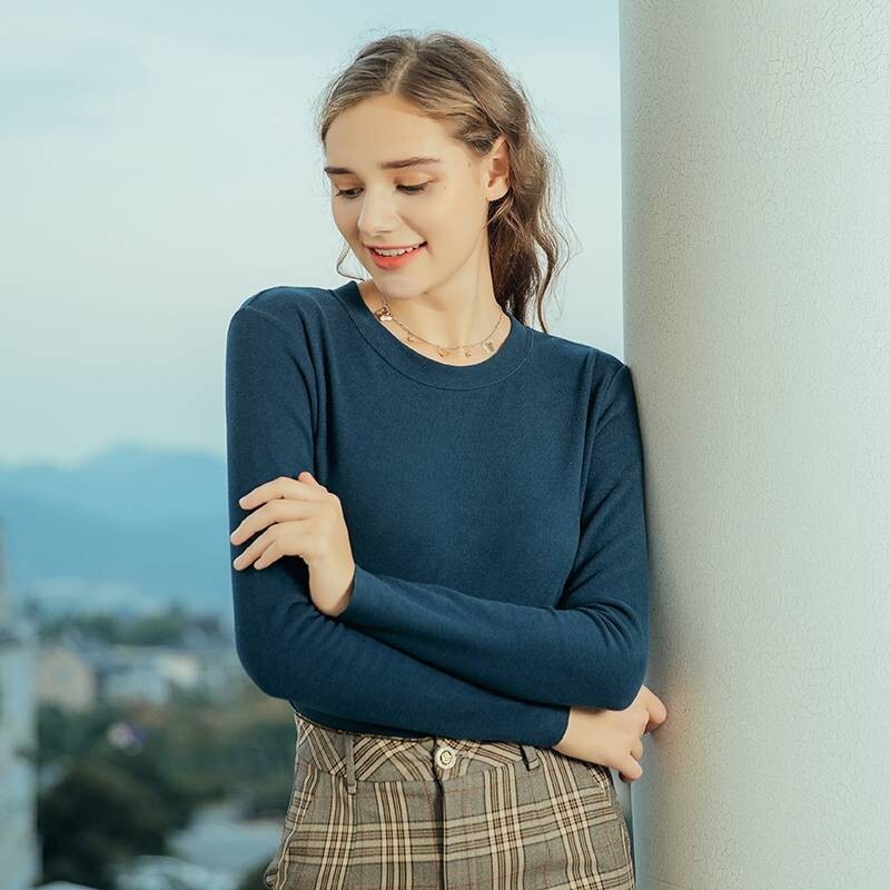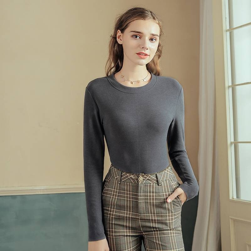 Autumn and winter women's round neck double-sided German velvet constant temperature heating and cold protection warm hyaluronic acid skin care clothes long-sleeved inner wear