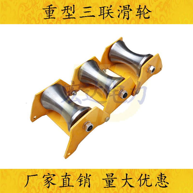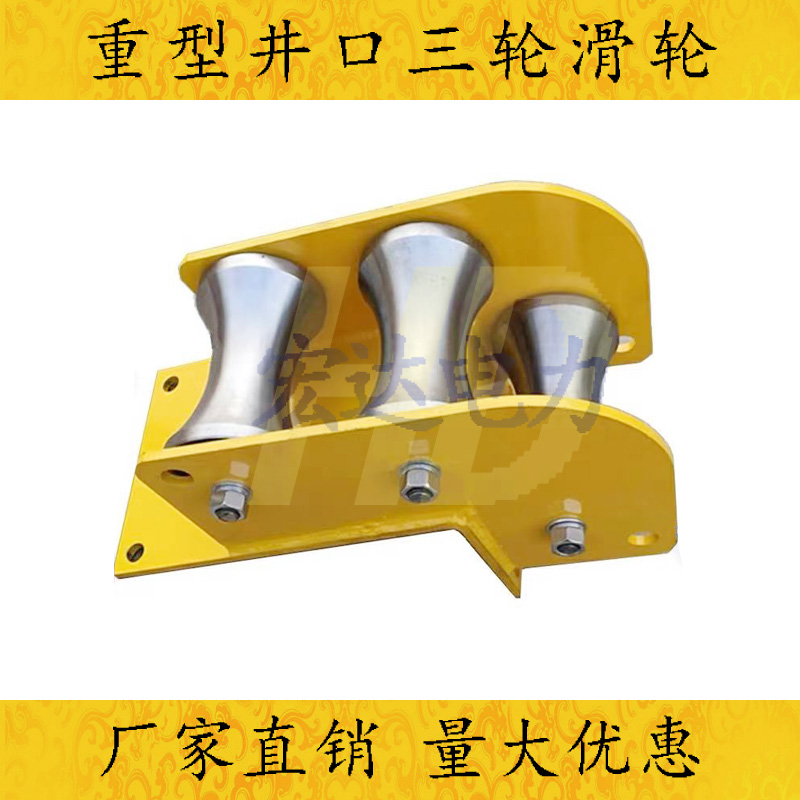 Reinforced cable pay-off pulley triple wellhead three-wheel corner straight run single-wheel hole nozzle protection nylon pulley