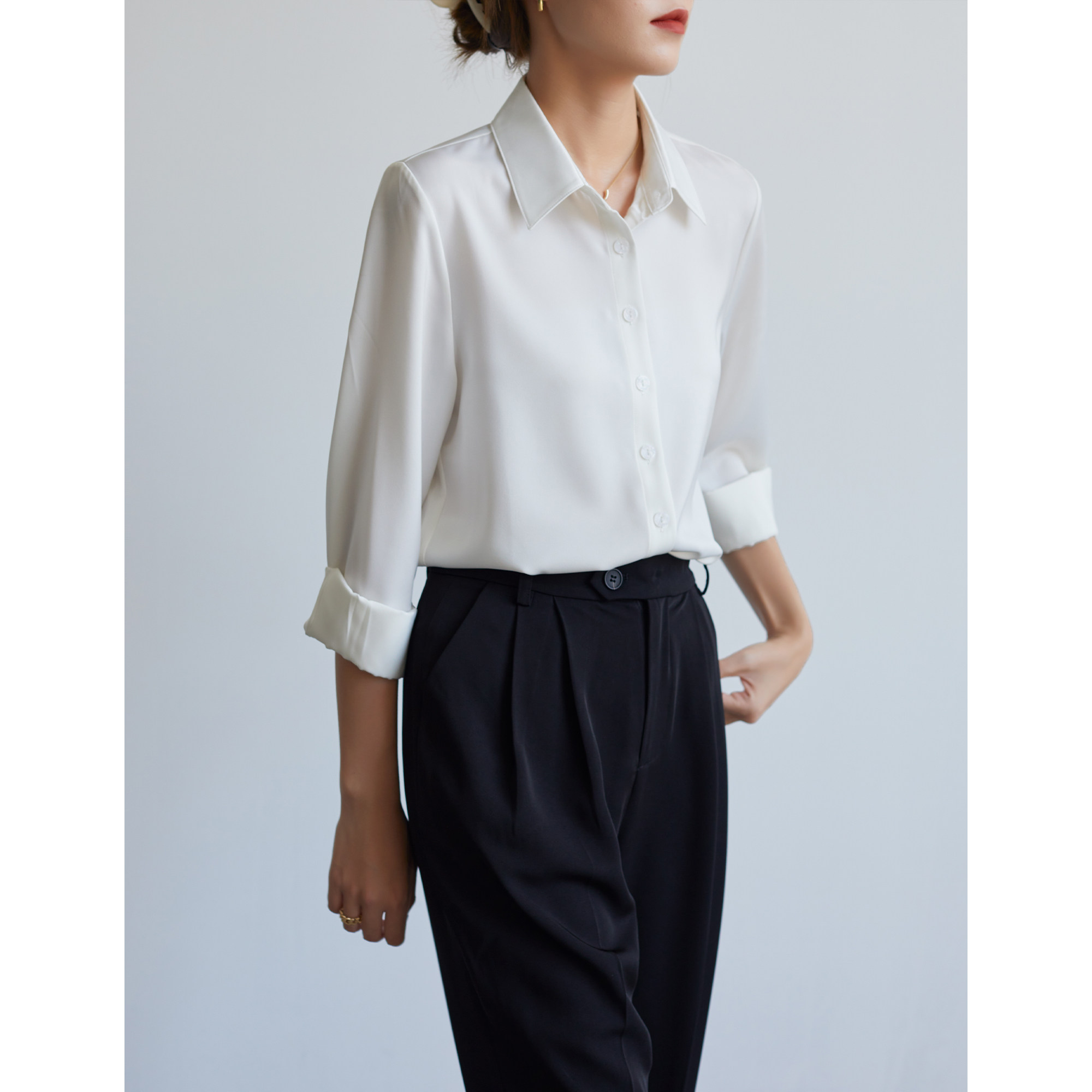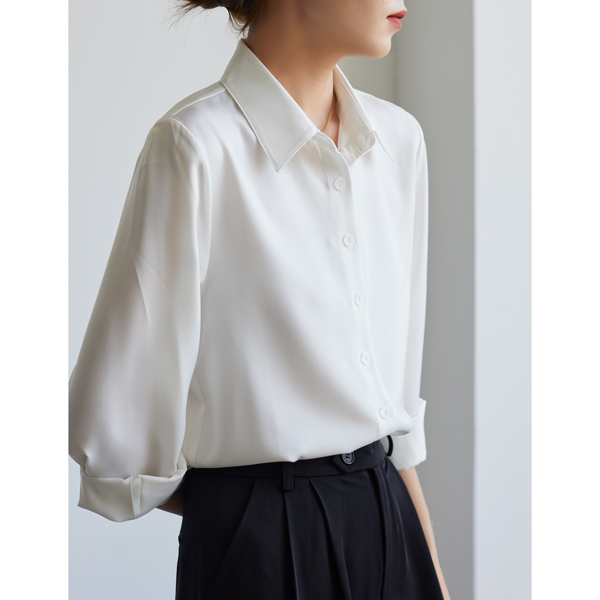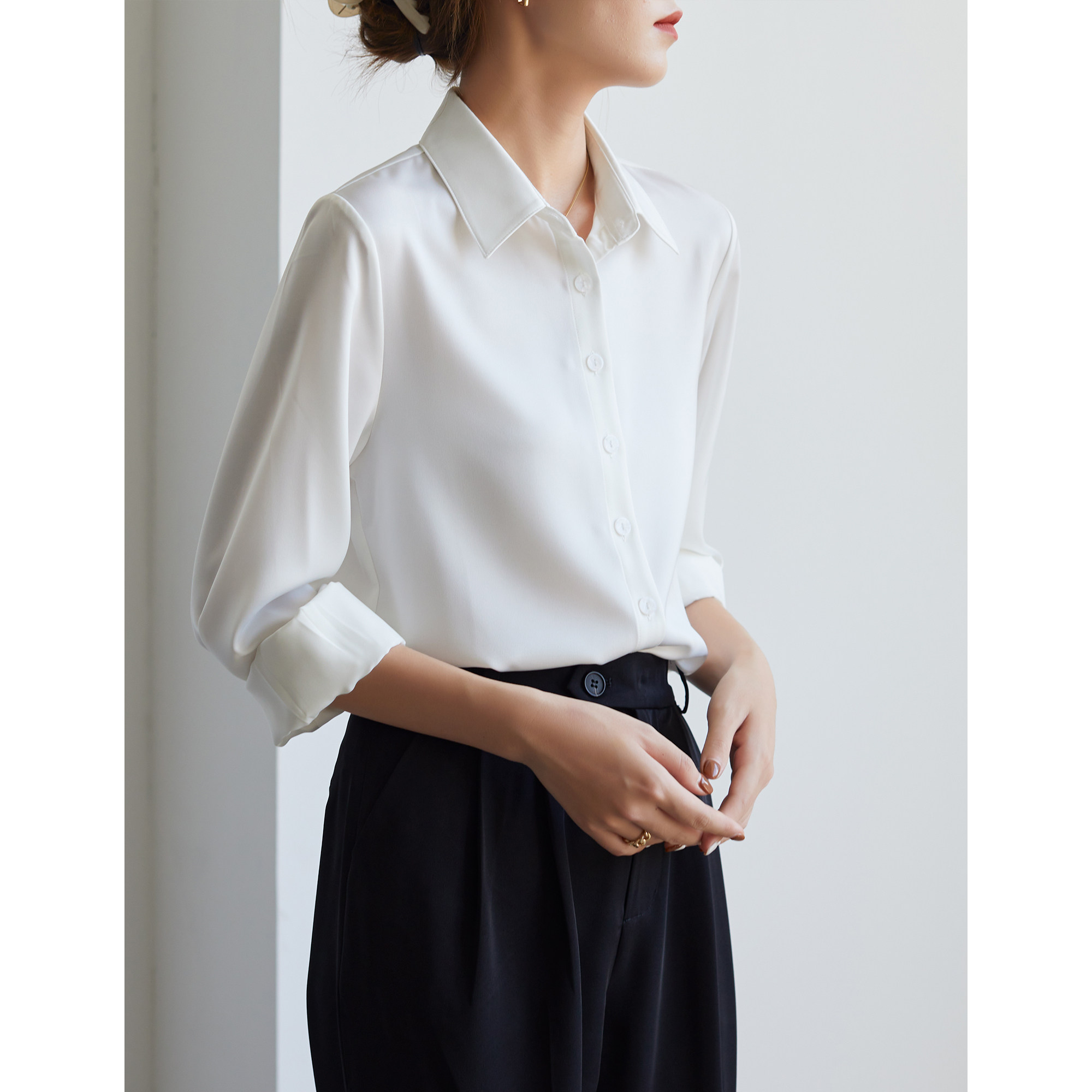 S AUTUMN white basic satin collar shirt women's professional commuting all-match long-sleeved shirt spring