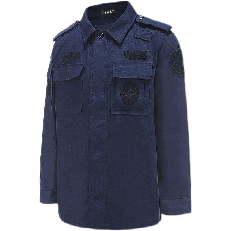 Security grid summer long-sleeved training large-size tooling uniform men's suit war training uniform Tibetan blue work duty uniform