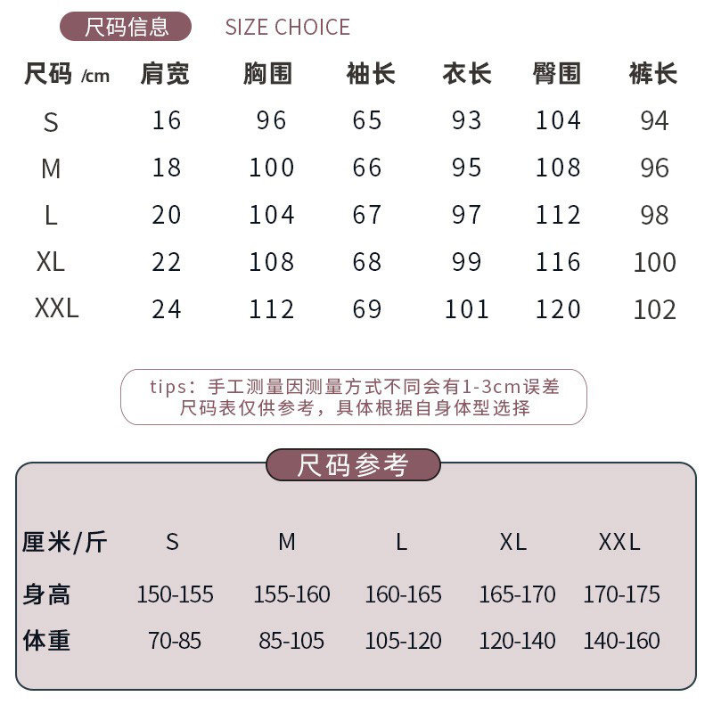 S (70-85 catties) M (85-105 catties) L (105-120 catties) XL (120-140 catties) XXL (140-160 catties)