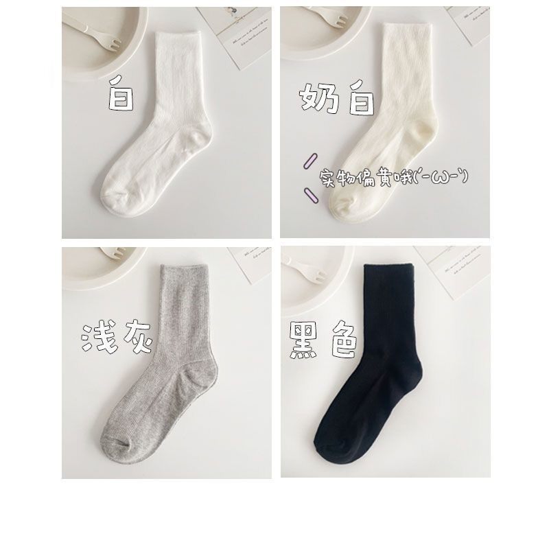 White socks women's socks pure cotton solid color bubble socks Japanese autumn summer black spring and autumn ins tide stockings