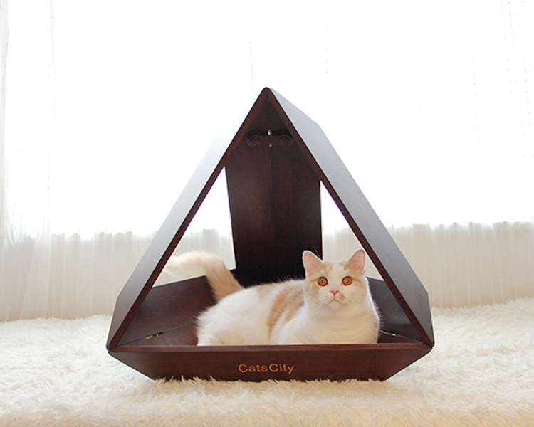 CatsCity original design sci-fi meow star triangular space capsule cat litter bamboo and wood summer cool non-stick hair