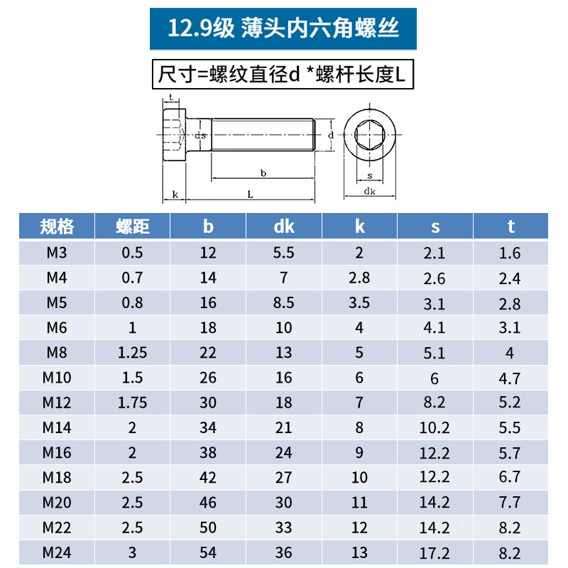12 Grade 9 thin head inner hexagon screw DIN7984 short head flat head bolt m3m4m5m6m8m10m12m16
