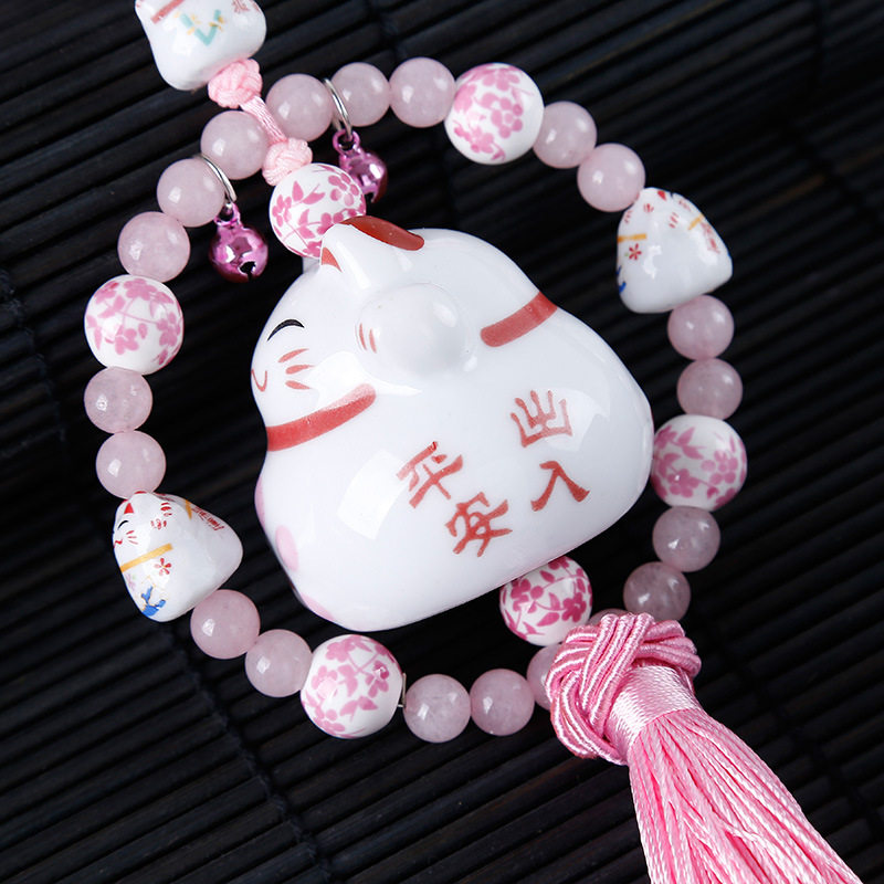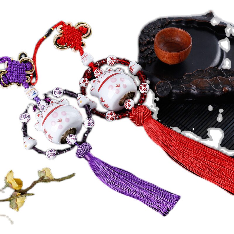 Lucky cat car pendant China guarantee safe rearview mirror pendant diy ceramic cute lucky girl pendant
