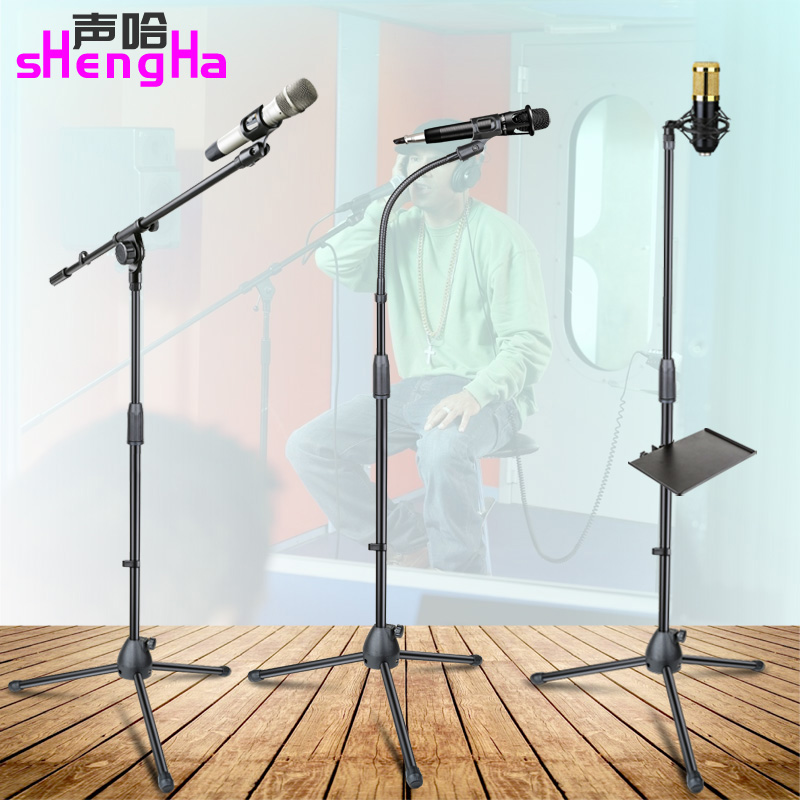Shengha microphone bracket tripod floor-to-ceiling mobile phone live vertical wheat rack crossbar shock-proof rack microphone rack