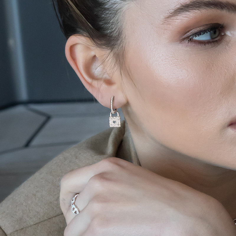 APM Monaco Love Key Lock Earrings Silver Earrings Women's Fashion Personality Earrings Design Girl Gifts