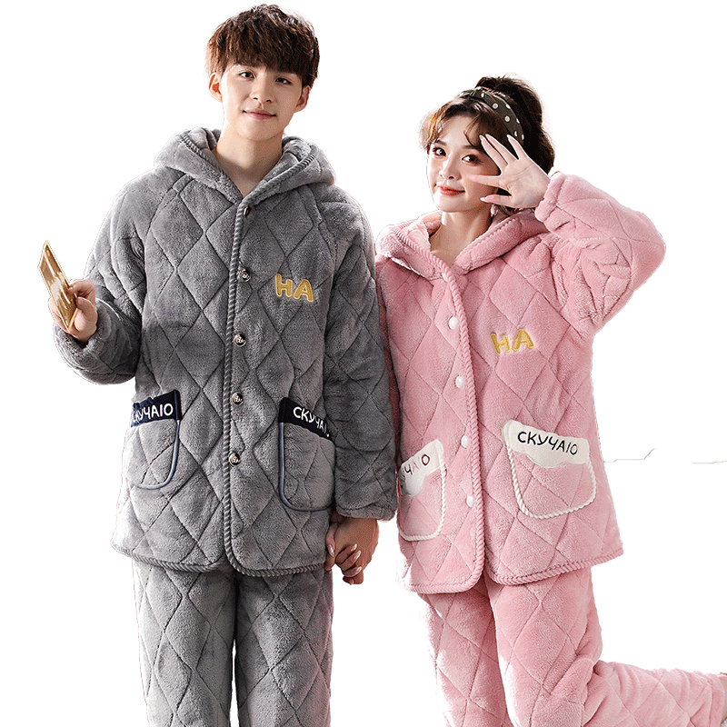 Pajamas women's autumn and winter coral fleece thickened and velvet warm and cute flannel couples winter homewear suit