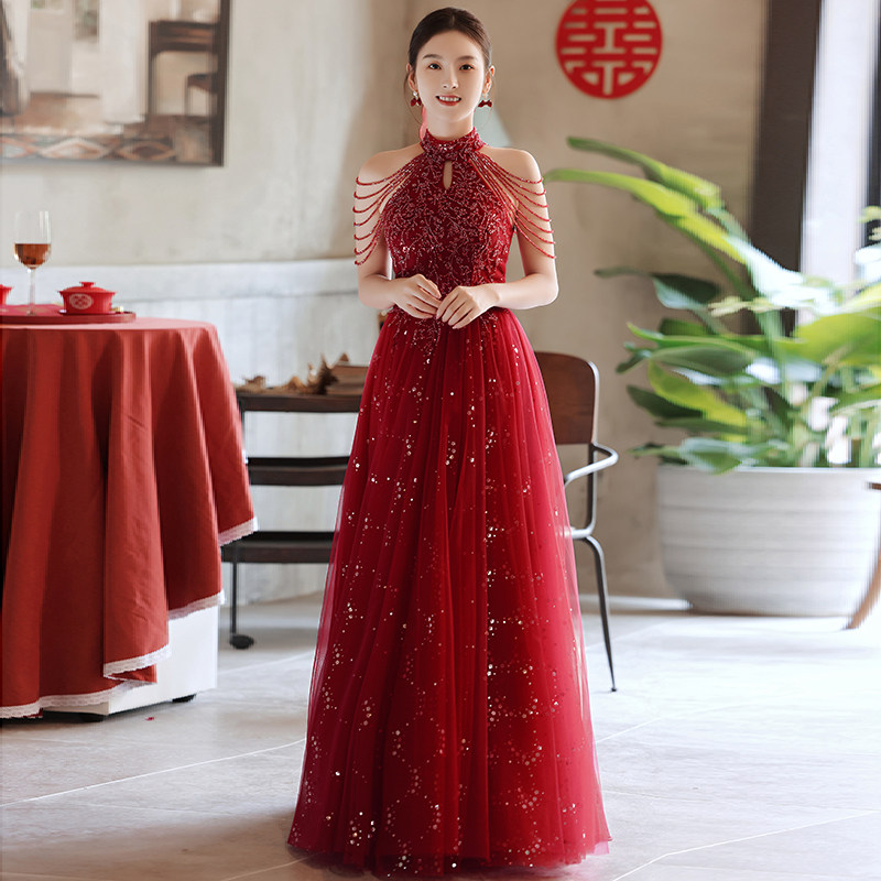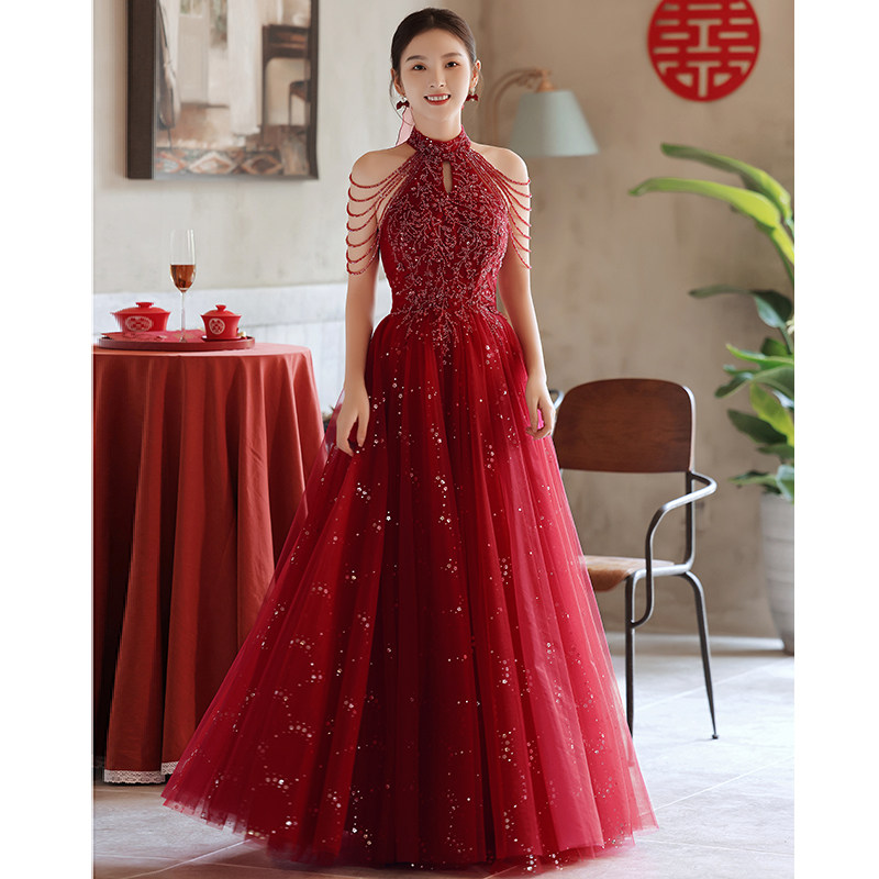 Toast Bride 2021 New Advanced Sensation Wedding Banquet Temperament shoulder Stream Host Evening Dresses Dresses Dress Summer