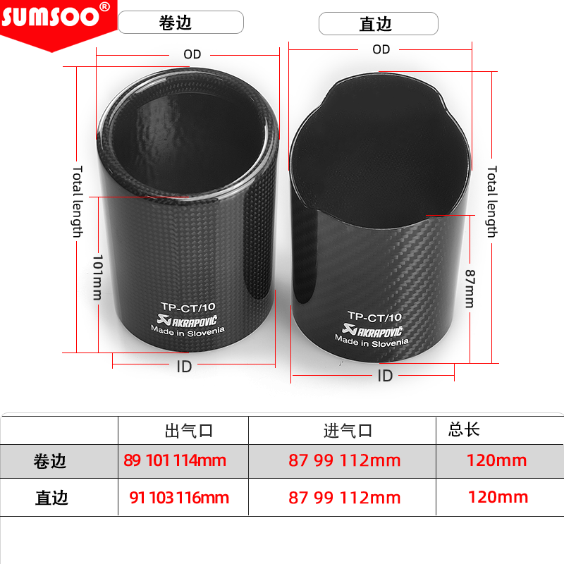 SUMSOO automotive Universal exhaust pipe Carbon fiber hood exhaust silencers pipe tip housing exhaust tip housing