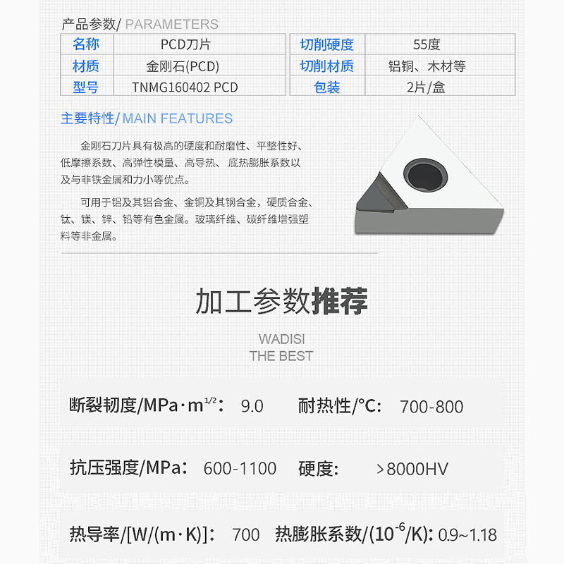 TNMG160402 PCD (R0 2 for copper and aluminum) TNMG160404 PCD (R0 4 for copper and aluminum) TNMG160408 P