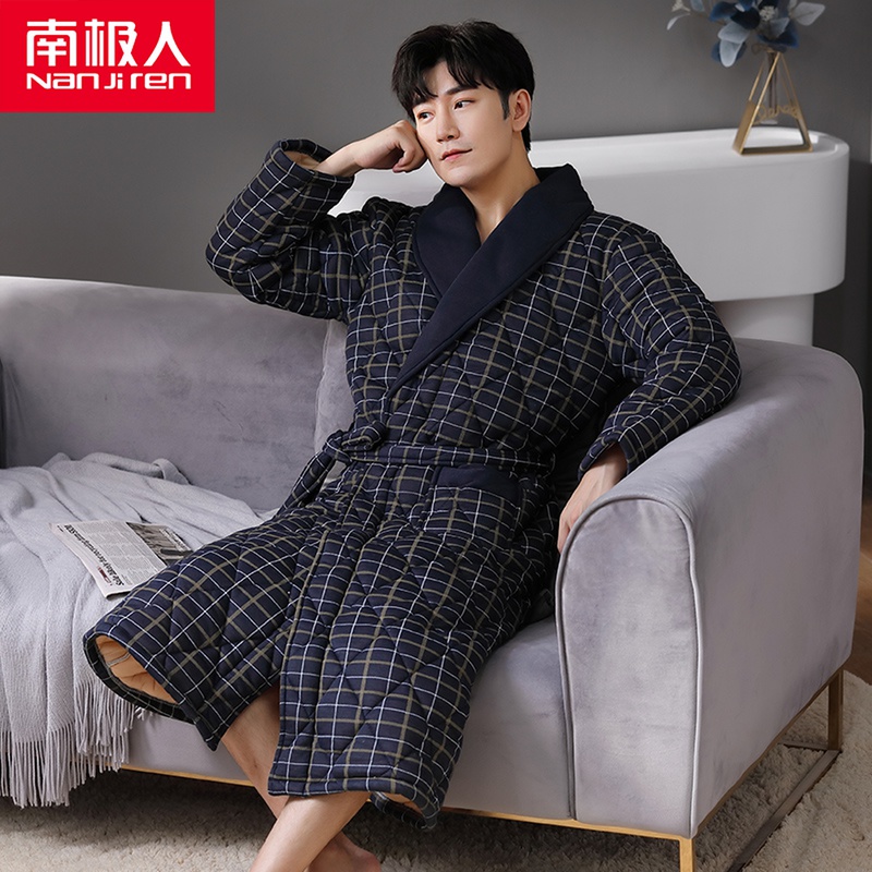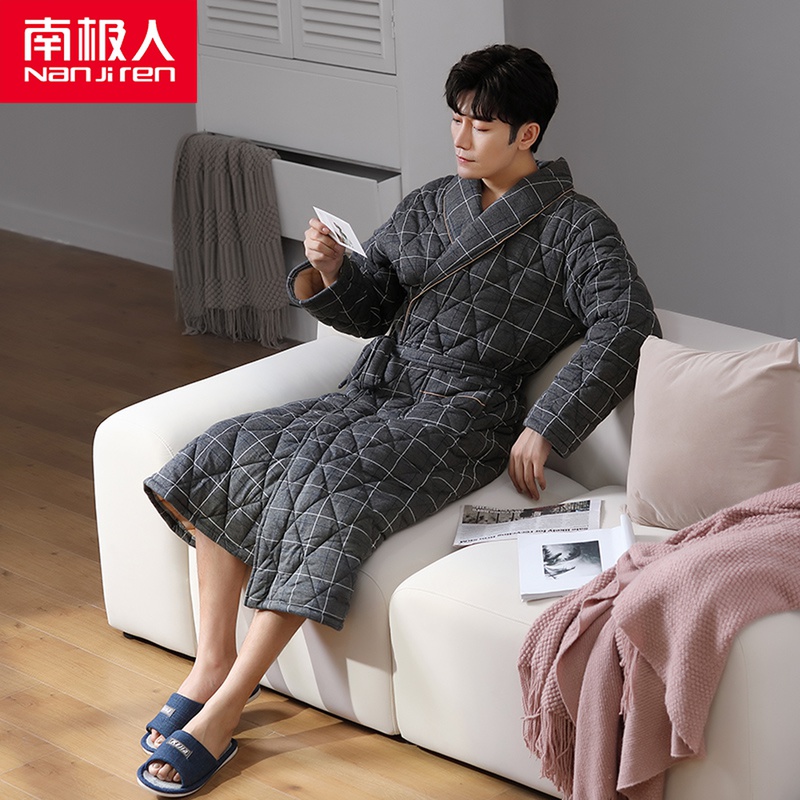 Antarctic people winter style Japanese style kimono pyjamas men's pure cotton clip cotton sleeping robe bathrobe full cotton thickened autumn and winter