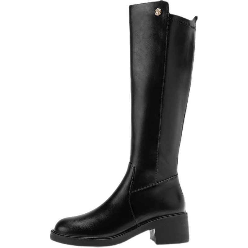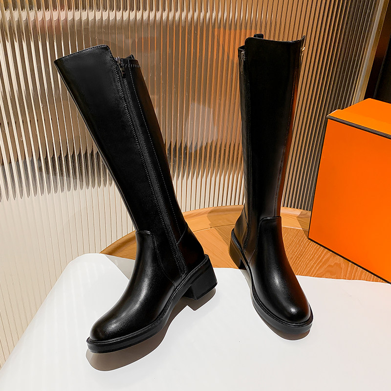 Genuine leather long cylinder boots female winter plus suede 2021 new coarse leg horse boots though knee-high cylinder boots slim riding boots