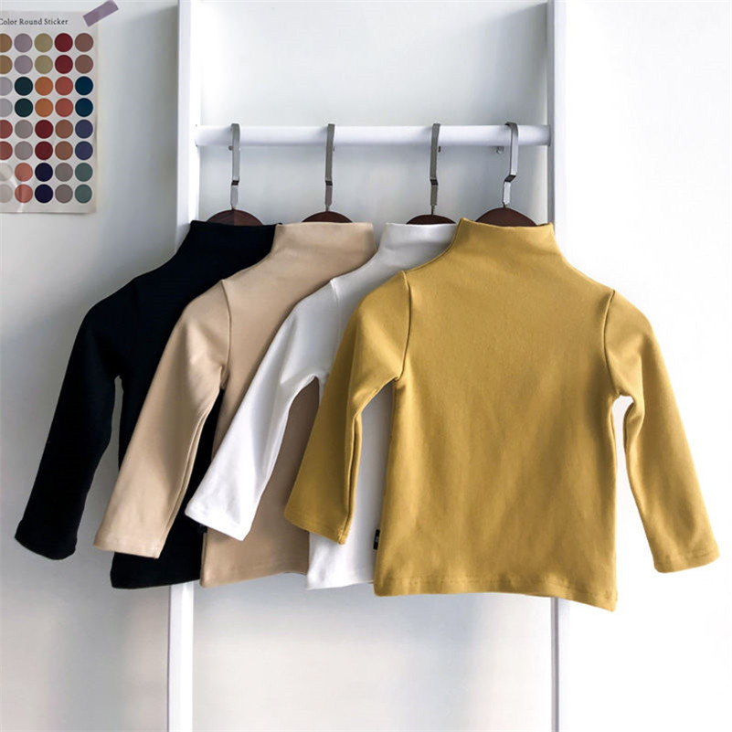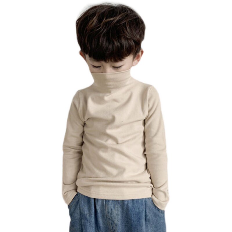 Children's blouse girls long sleeves high baby spring, autumn and winter new thickening T-shirt boys pure tops