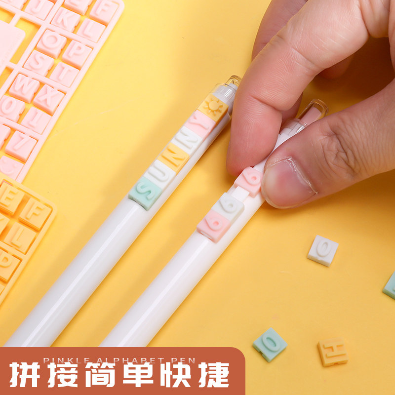 Chenguang spelling spelling letter pen set can be any DIY creative English digital pen girlfriend pen black neutral pen press-type signature water-based pen students with stationery net red press pen couple pen