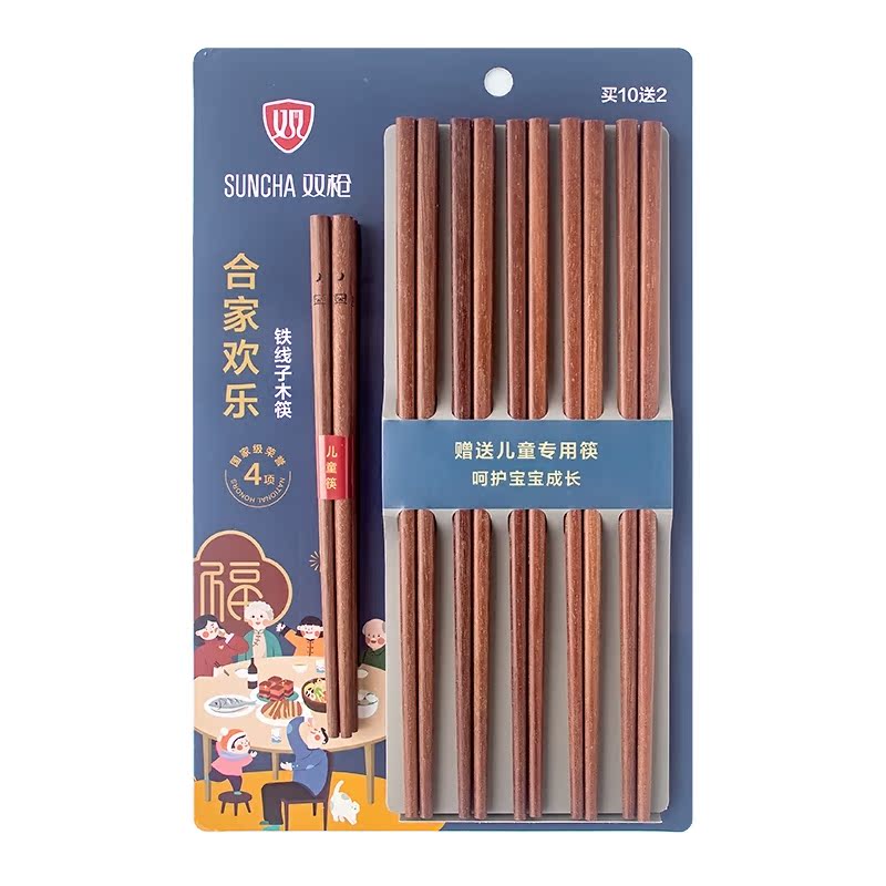 Iron Wire Sub Wood Chopsticks 10 Double 2 Double Children's chopsticks
