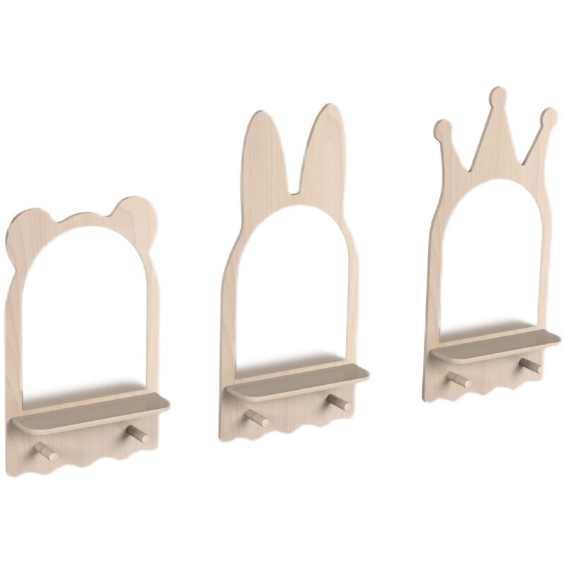 Children's room wall-mounted crown-shaped wooden mirror bear rabbit animal shape children's mirror dressing table bedroom