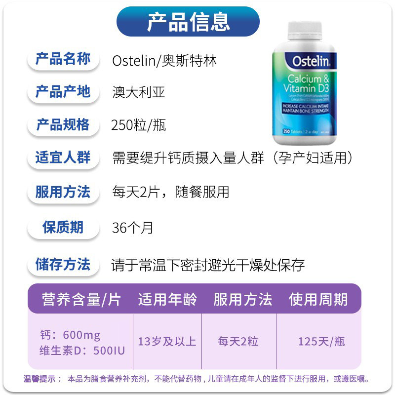 Australian Ostelin Ostling calcium tablet vitamin for older calcium tablets D3 Adult calcium 250 tablets-Taobao
