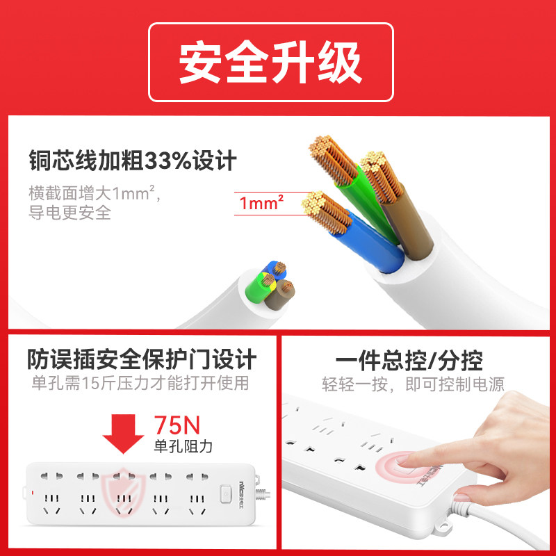 Thunder socket panel porous insert long line Multipurpose functional home Dormitory Towed-to-Line Extension Line with Line