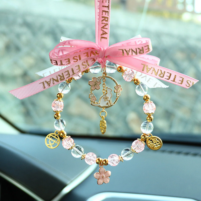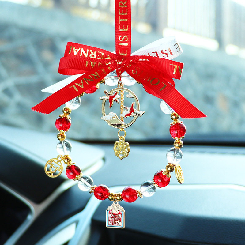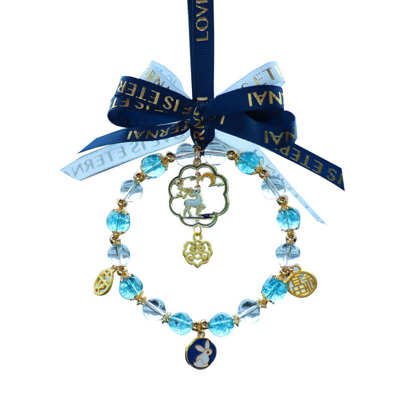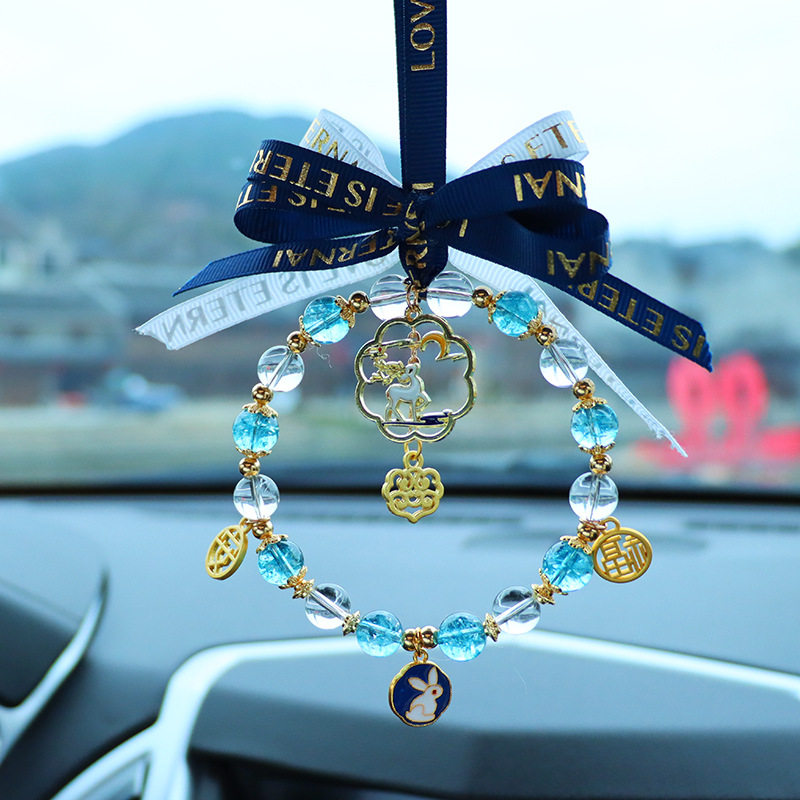 Blue Crystal Ping An Deer Cart Pendant Orange Crystal Ping An Deer Cart Pendant Green Crystal Ping An Deer Cart Pendant Pink Crystal Jade Cat Cart Pendant Big Red Crystal Crane Cart Pendant Taro Purple Crystal Moon Rabbit Car Hanging
