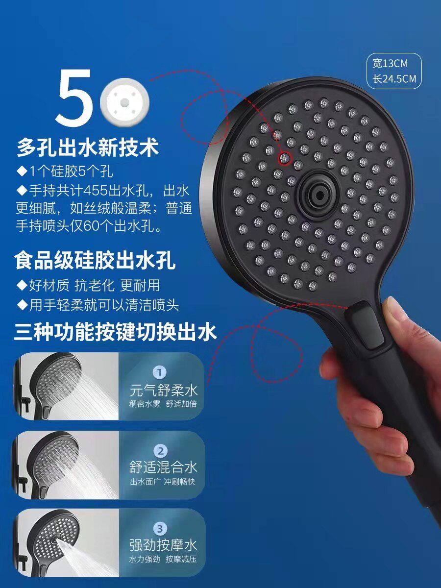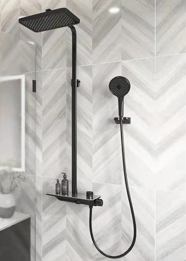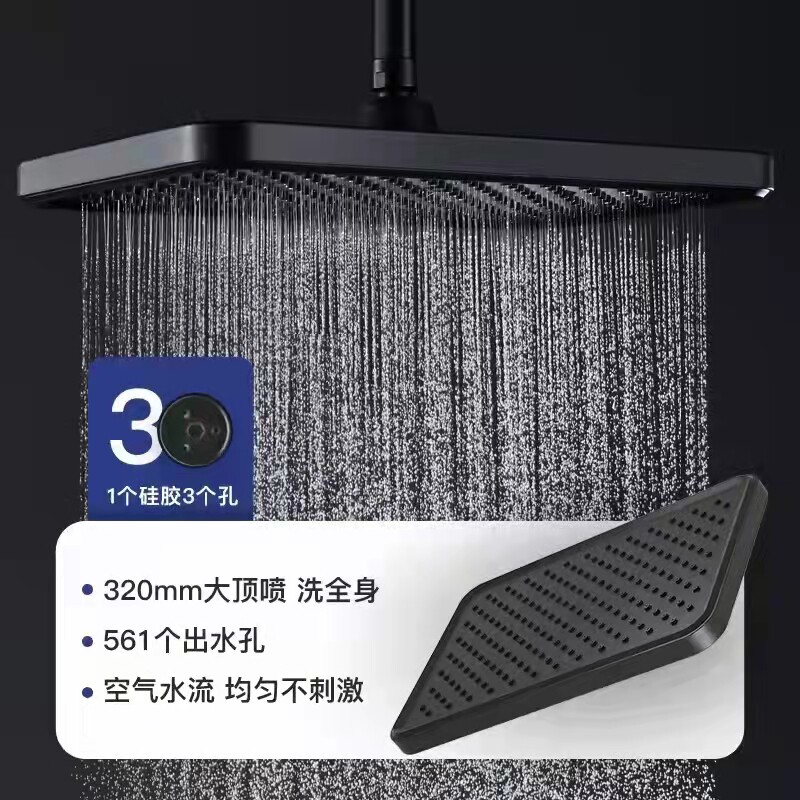 Single-handed spray one hole five out of three functional Ming-fit fine rain shower suit black square shower head with fine rain suit round-shaped thermostatic button series One hole extra thermostatic black button One hole extra full black series fine rain 3