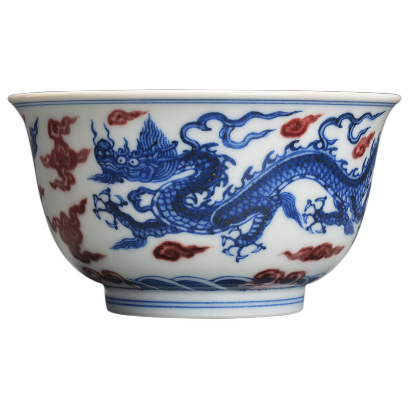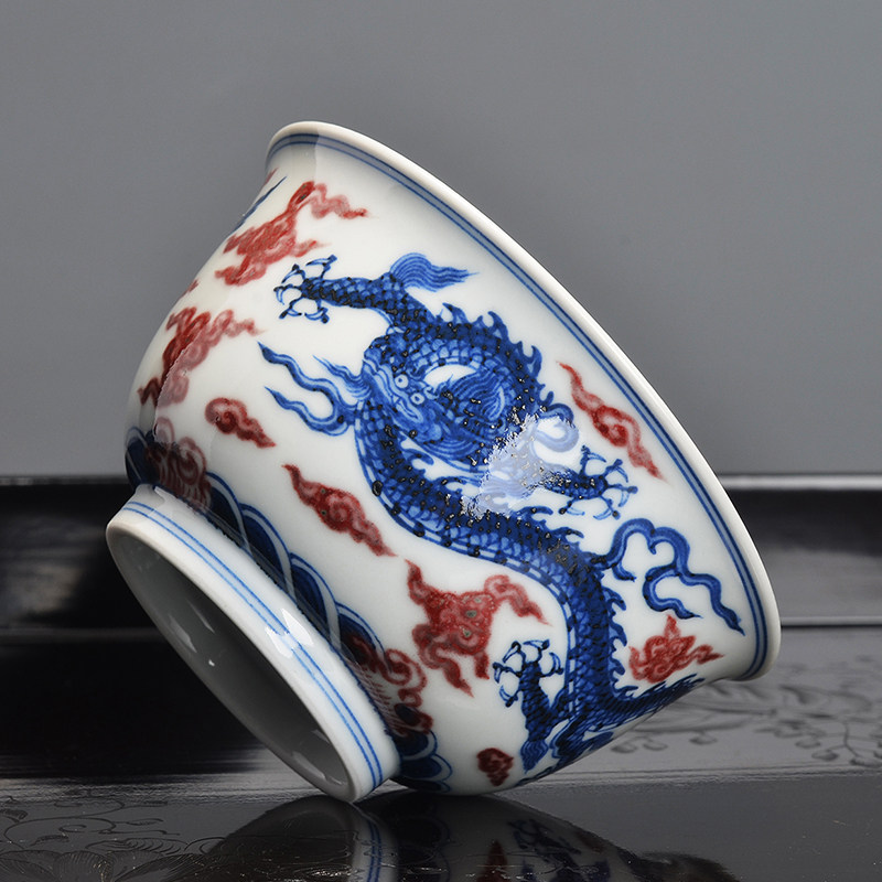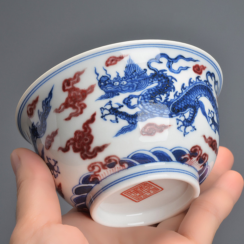 Gögen Raw Mine Green Flower Glazed Red Fire Clouds Double Longline Cup Pint Tea Cup Master Cup Single Cup Hand-painted Kung Fu Tea Tea
