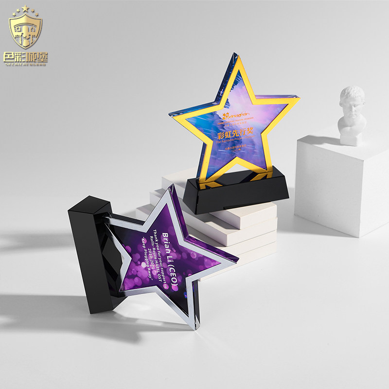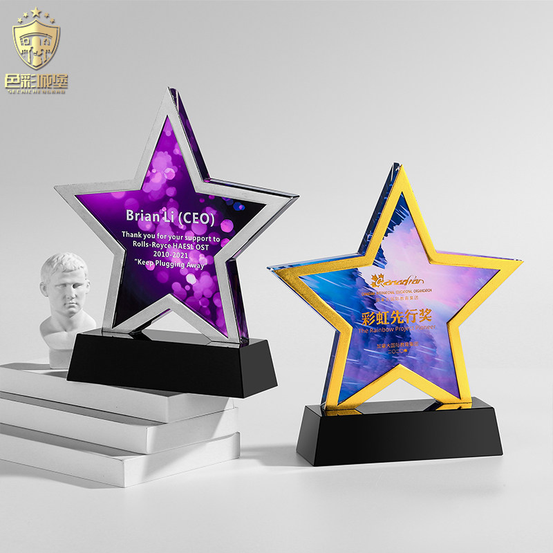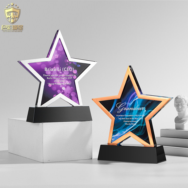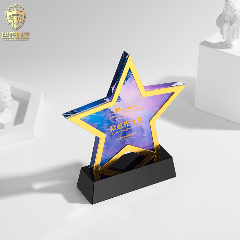 Creative pentagram crystal trophy custom metal medal custom custom authorization card custom gold, silver and bronze souvenirs