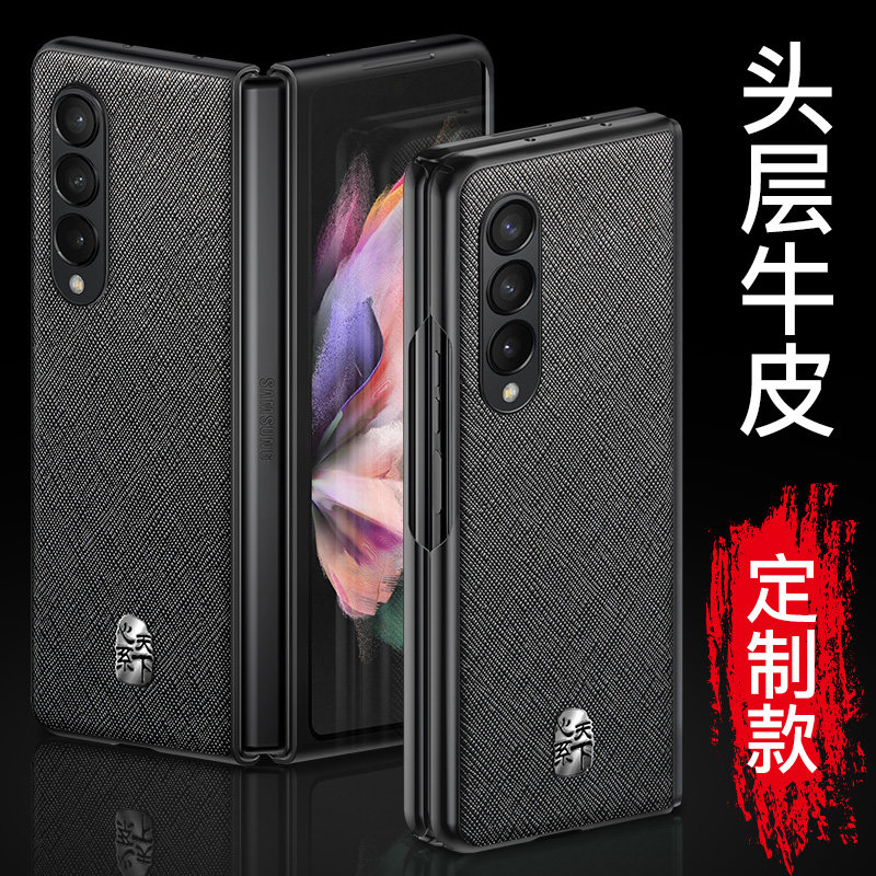 Original Samsung fold3 mobile phone case new leather clamshell leather case z fold3 folding screen limited edition protective case w22 simple all-inclusive anti-fall mobile phone case sm-f926