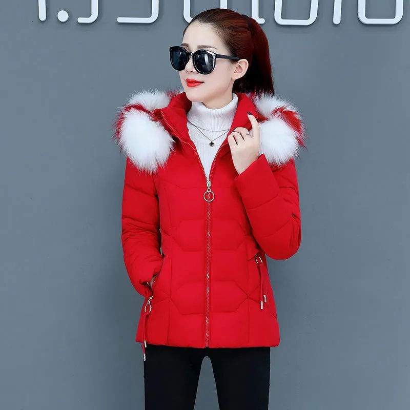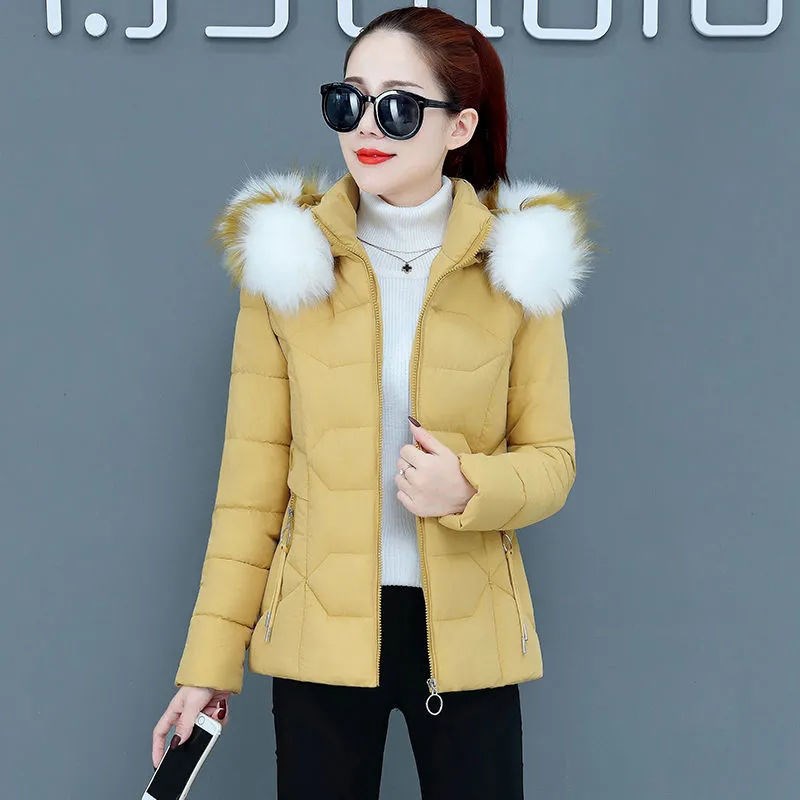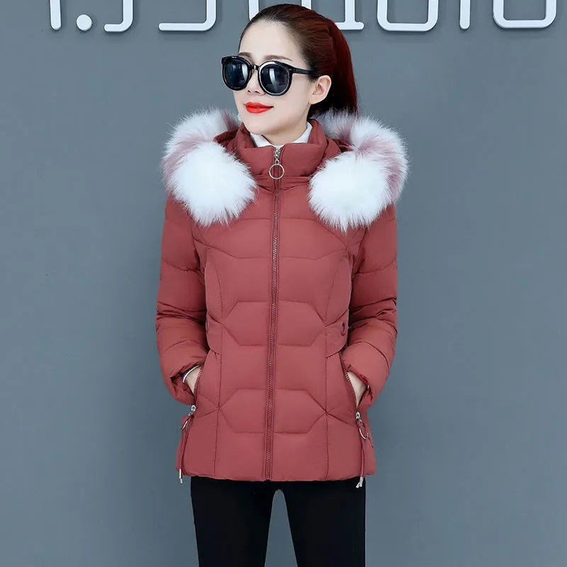 Cotton clothes women 2021 new winter plus velvet thick short cotton coat coat big hair collar detachable hat small cotton padded jacket