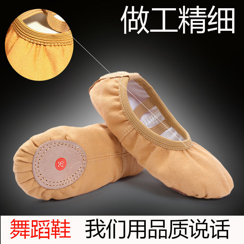 Children Dance Shoes Girls Free Lace Soft Bottom Dance Shoes Dance Practice Shoes Camel Color Meat Color Female Cat Grabbing Shoes Ballet