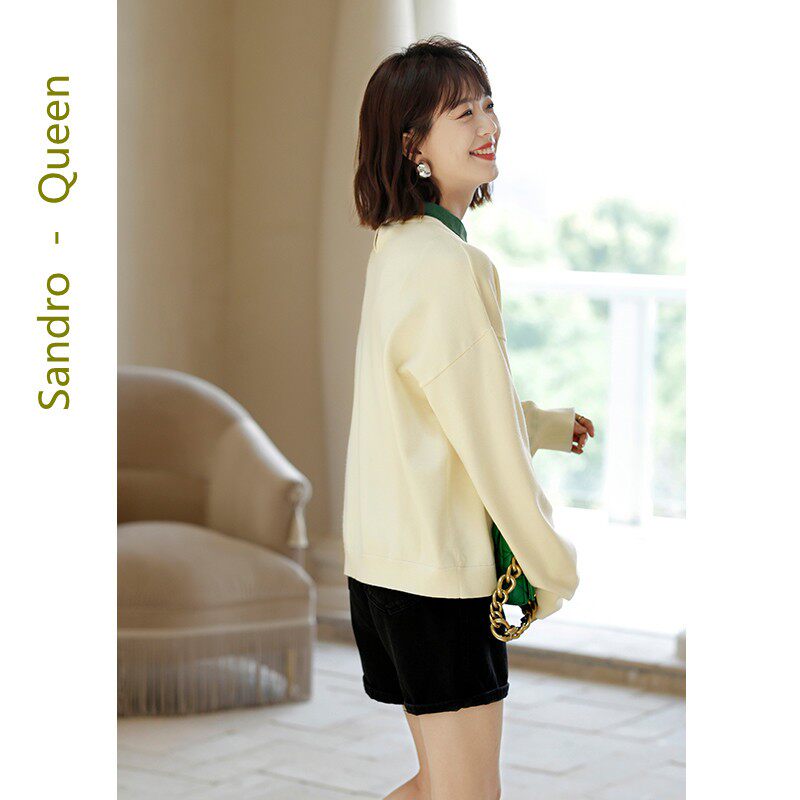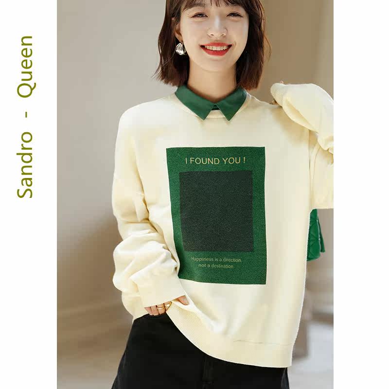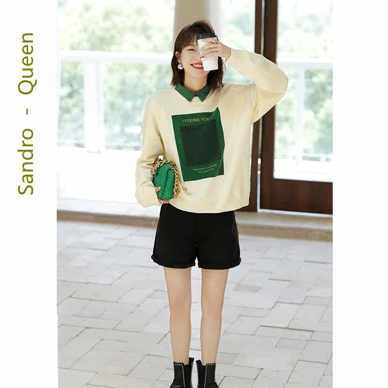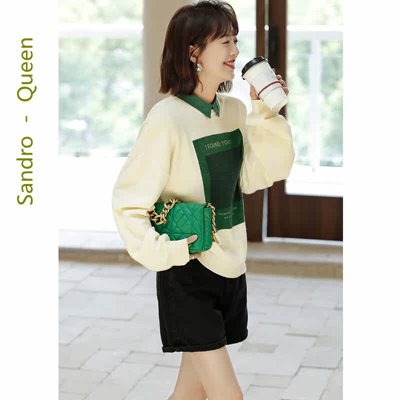 Sandro Queen2021 autumn new long-sleeved niche top women's fake two-piece knitted sweater temperament women's clothing