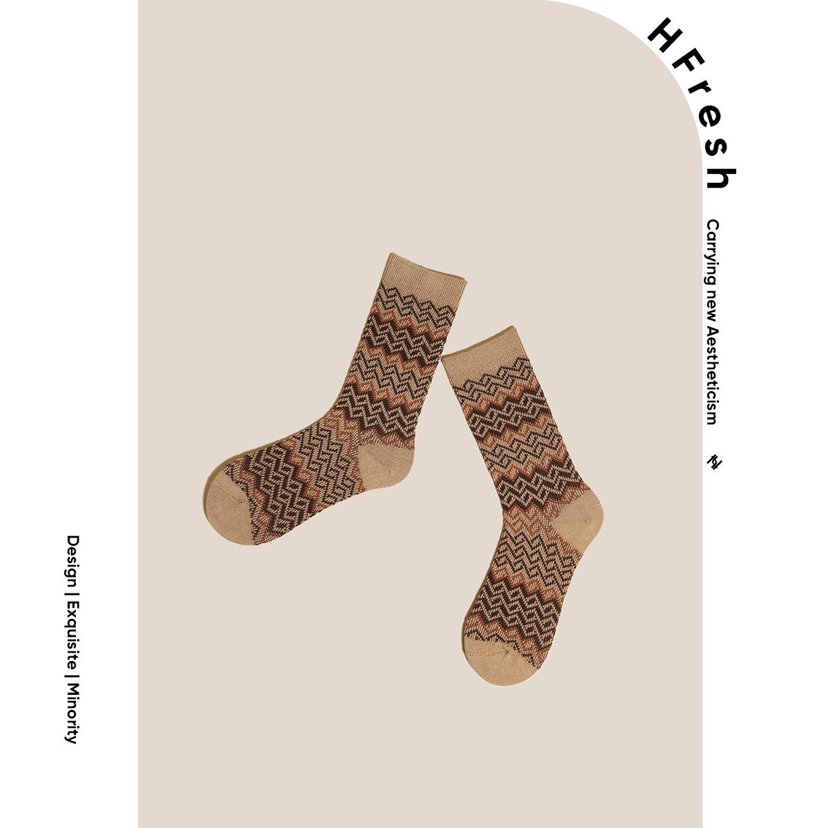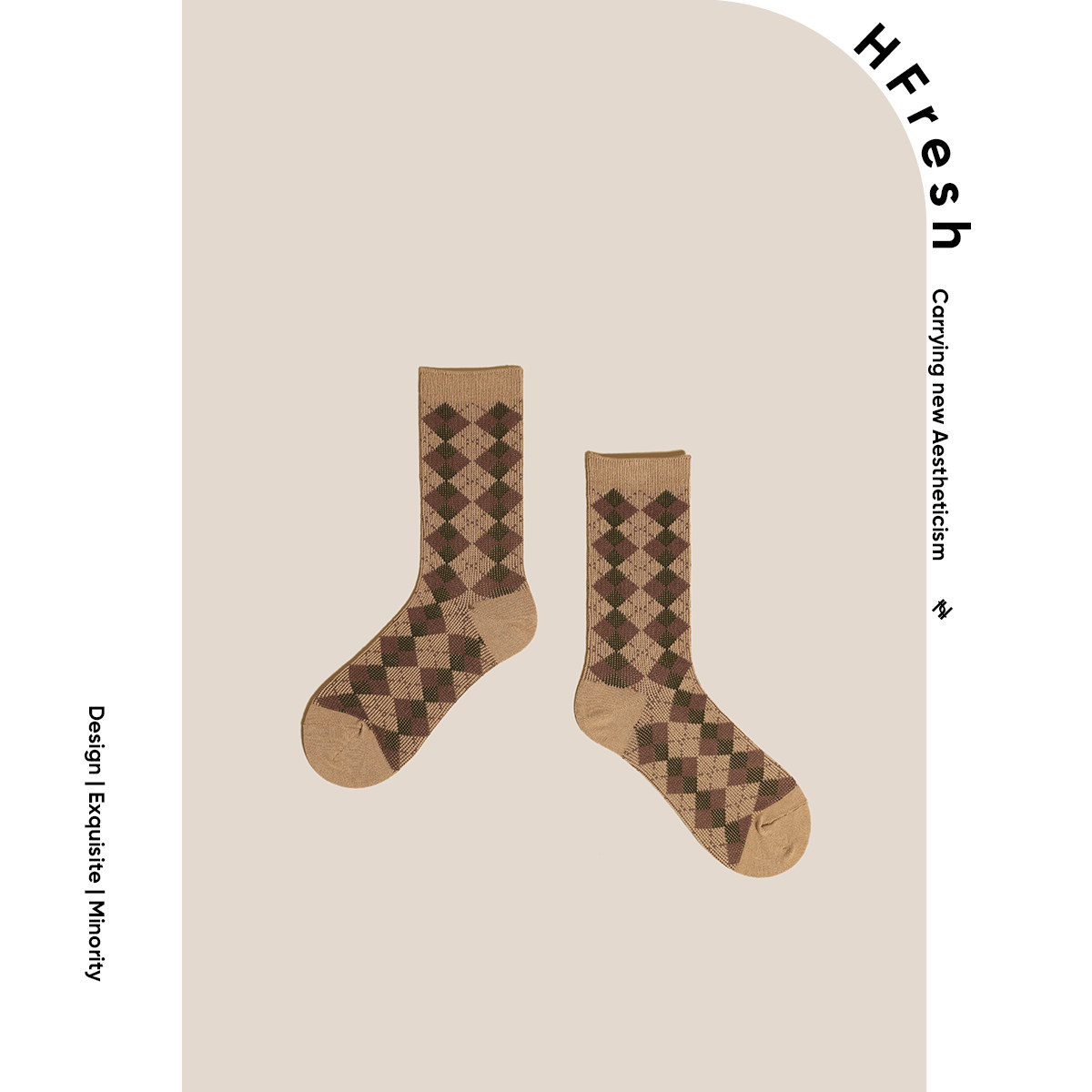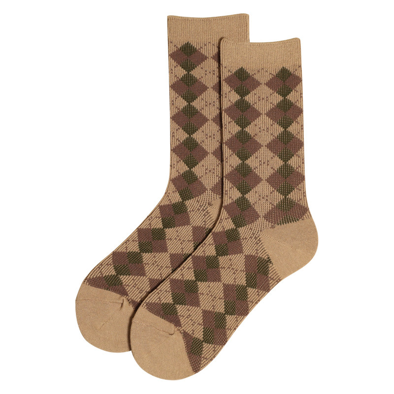 HFresh socks women's jacquard mid-tube knitted stockings pure cotton rhombus grid retro Japanese British style pile socks