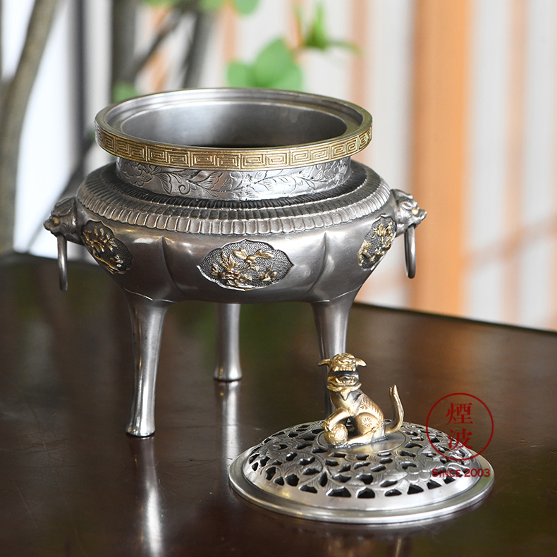 Japan's Fuzan Takaoka Snow for Pure Silver Overdraft Flowers Birds Silver Incense Stove Incense Stove Smoke Polo-Taobao