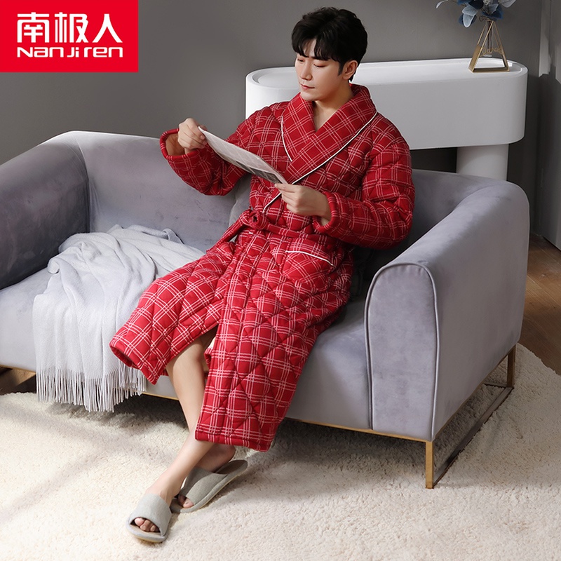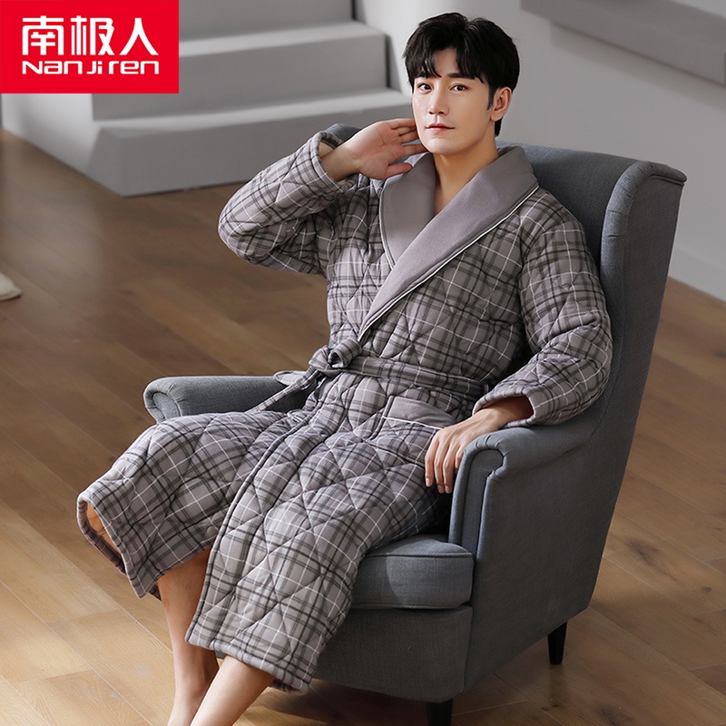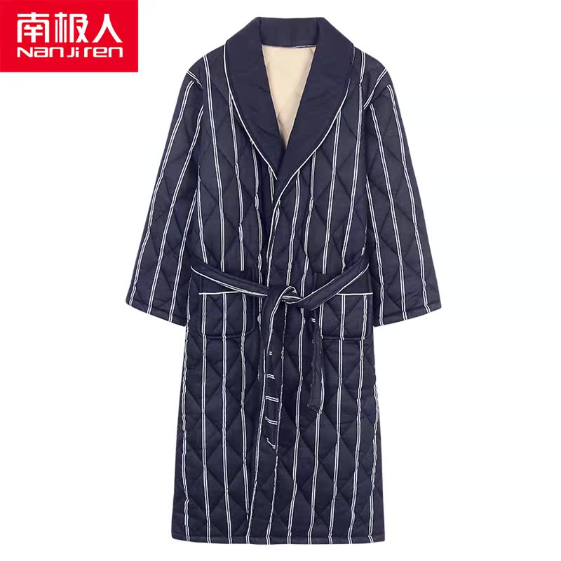 Antarctic pure cotton quilted men's pajamas thickened long version bathrobe men's winter bathrobe Japanese pajamas cotton winter