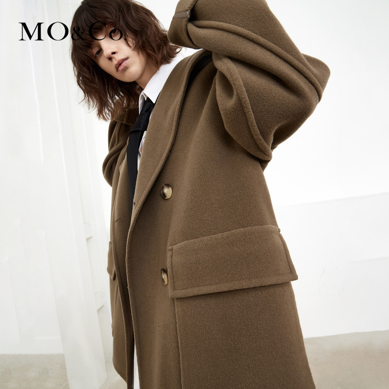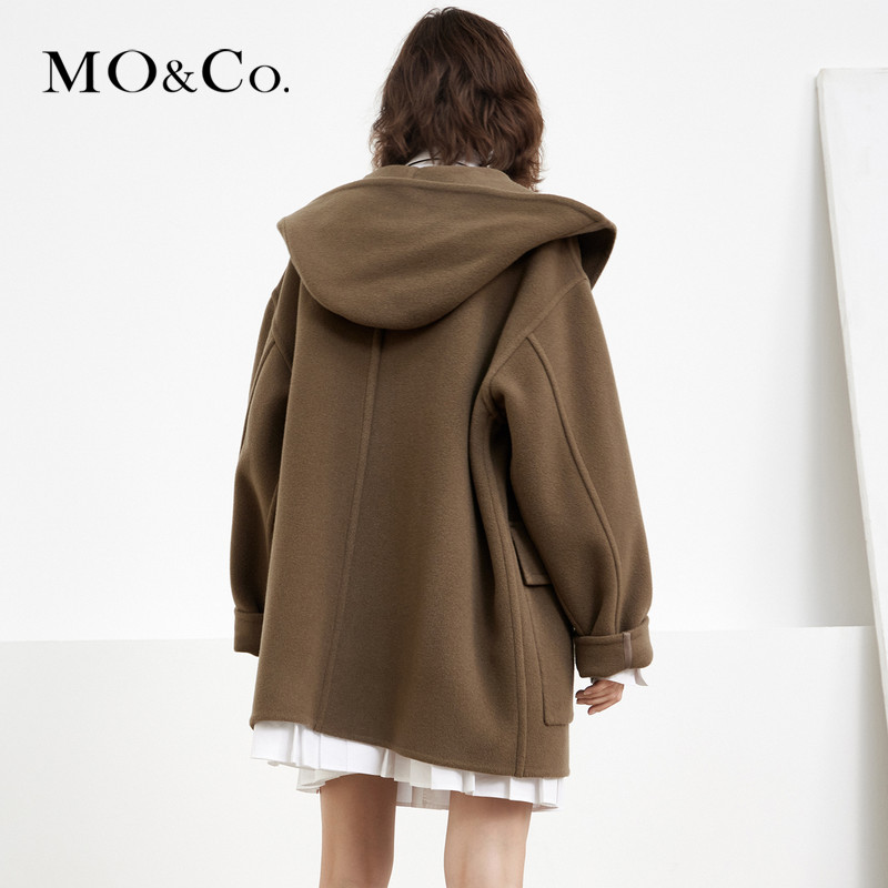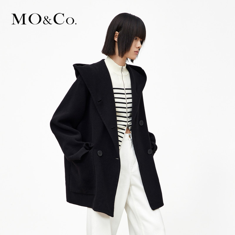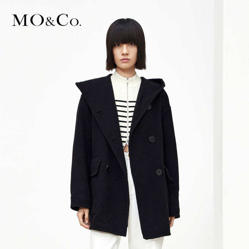 (Explosive Supplement) MOCO winter new vintage double-breasted large pockets hooded double-sided tweed coat