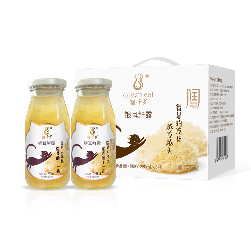 Cat-aged silver ear fresh dew 220ml * 6 bottled ready-to-eat fresh stew silver earthen spoon cooked and locked fresh soft glutinous perfume