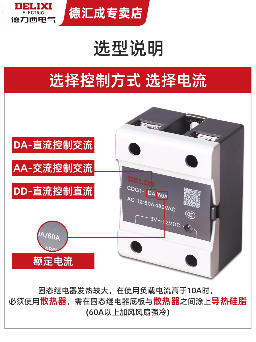 Delixi solid-state relay 220v AC CDG1 small 24v DC single-phase cooling base ssr control