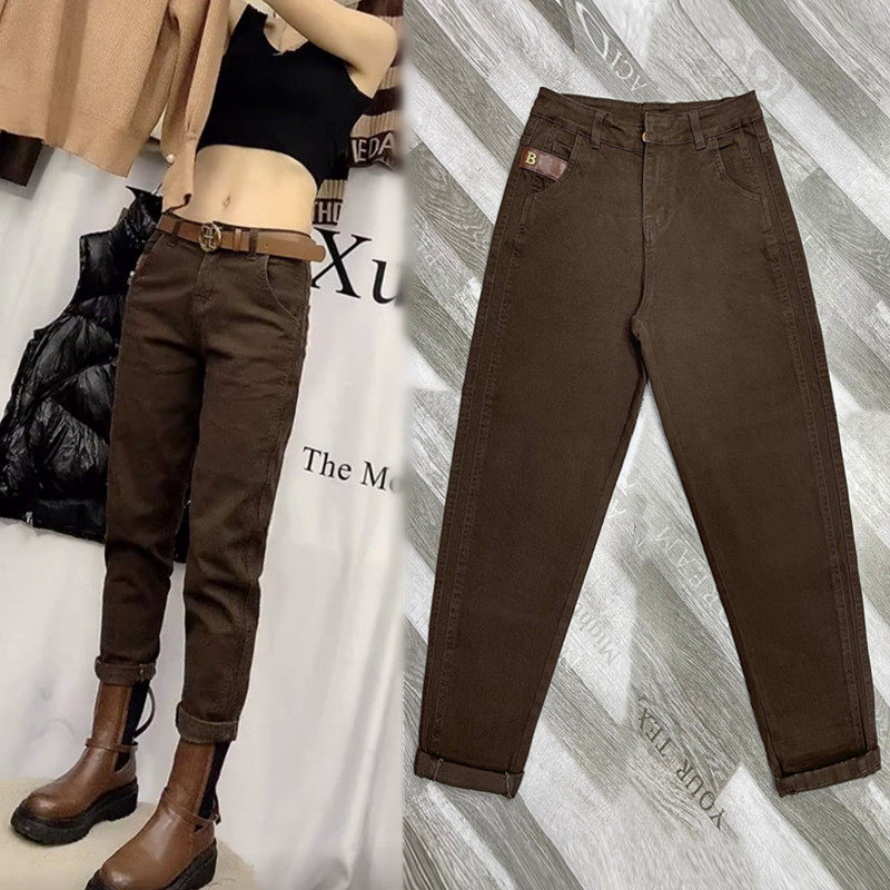 2022 autumn new jeans women show thin high waist straight harem pants dark washed cotton casual women's pants trend
