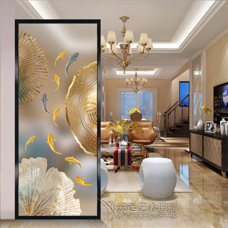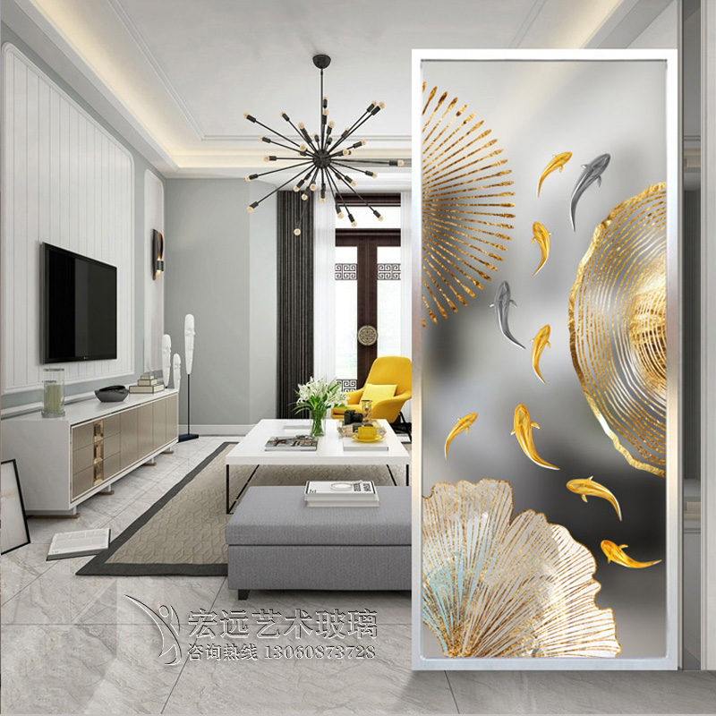 Decoration Custom Art Glass Partition Toughened light extravagant minimalist style Living room Bedroom Screen frosted transparent effect