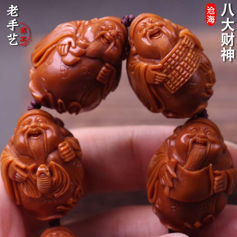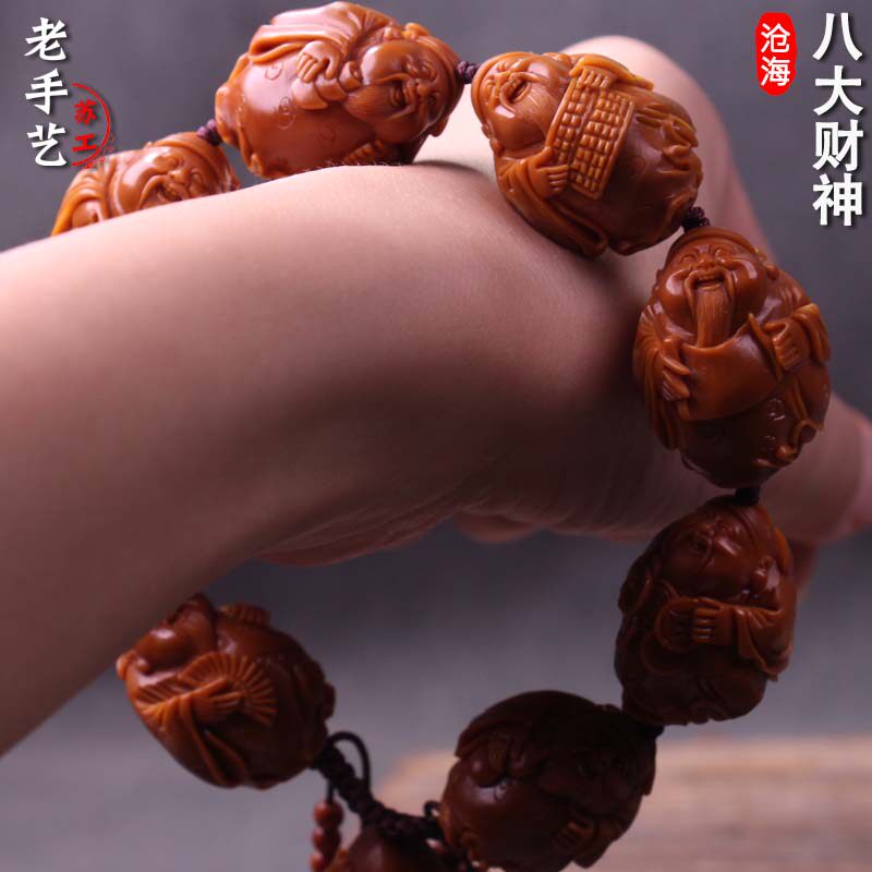 Sugong Zhoushan Eight Gods of Wealth Olive Kernel Carving Bracelets Pure Hand-Carved Eight Treasures God of Wealth Olive Hu Bracelet