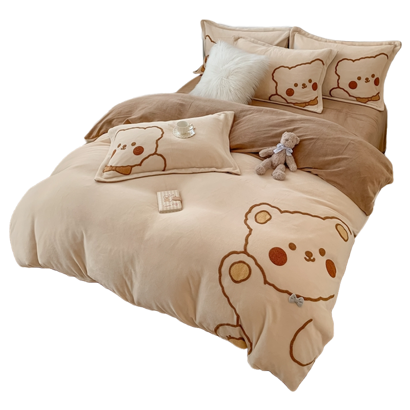 Children's cartoon cute quilt cover coral velvet four-piece set autumn and winter plus velvet flannel double-sided milk velvet three-piece set