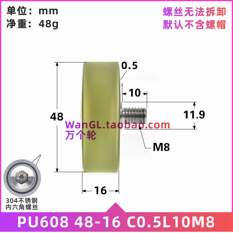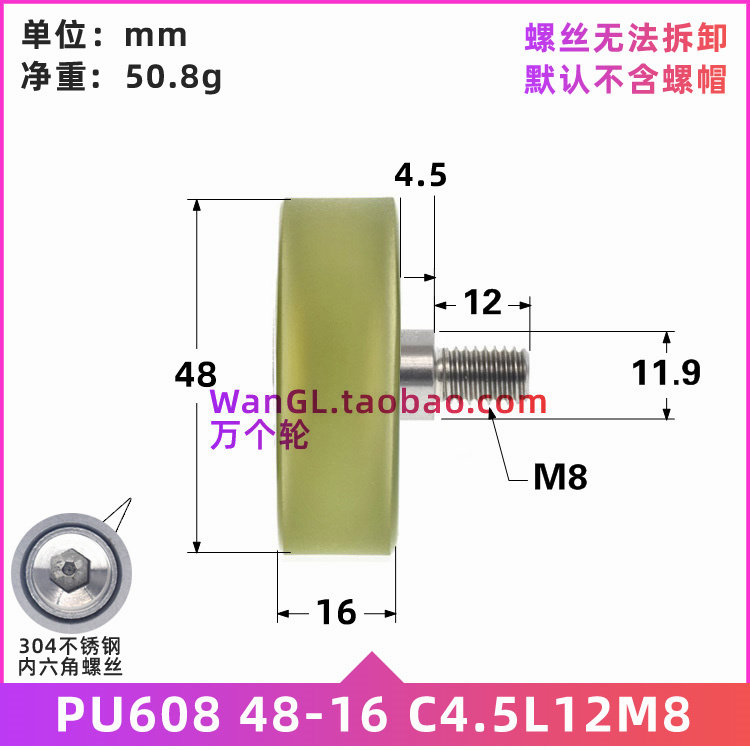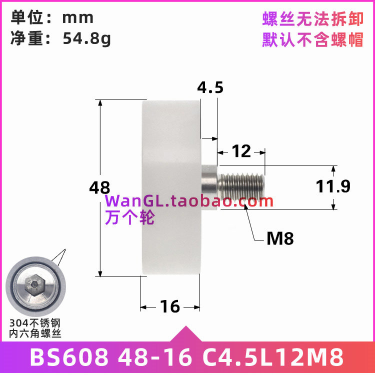 Aluminium alloy automatic equipment with screw stainless steel M8 plastic white 608 bearing peering pulley M8 * 48