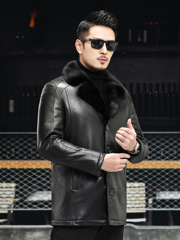 Haining fur one men's leather jacket mid-length mink collar coat father's fur winter thick coat