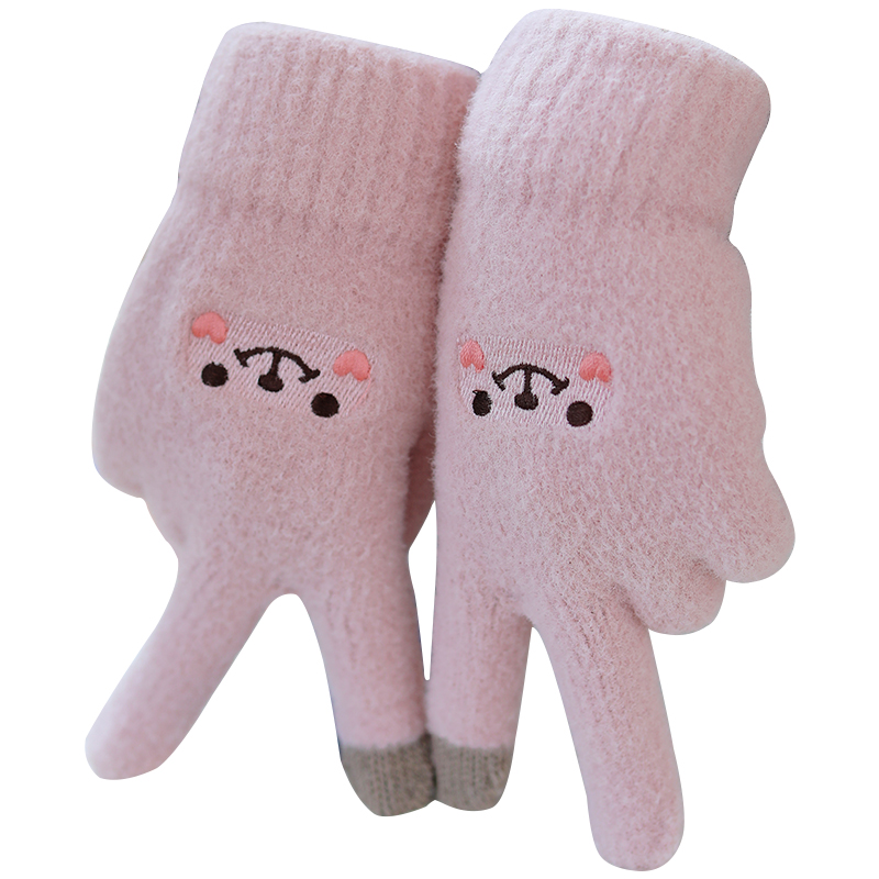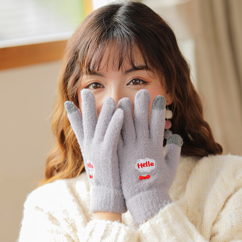 Rosex Tangk Gloves Winter Woman Warm Day Ensemble Korean Version Five Finger Plus Suede Touch Screen Knit Wool Cord Gloves Tide
