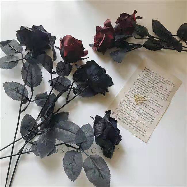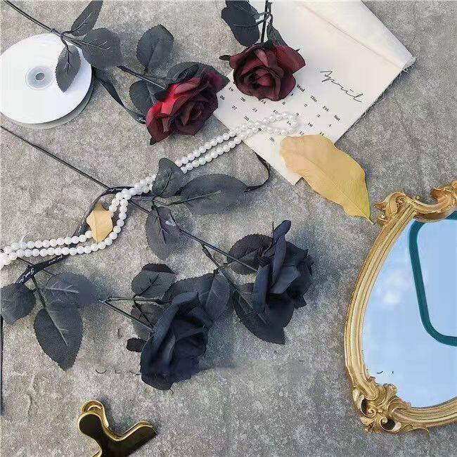 Retro Dark Red Emulation Rose dark Black Wind Write True photo Props Gothic black Rose Decorative Hand Grab Flowers