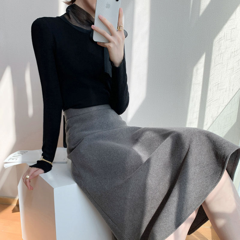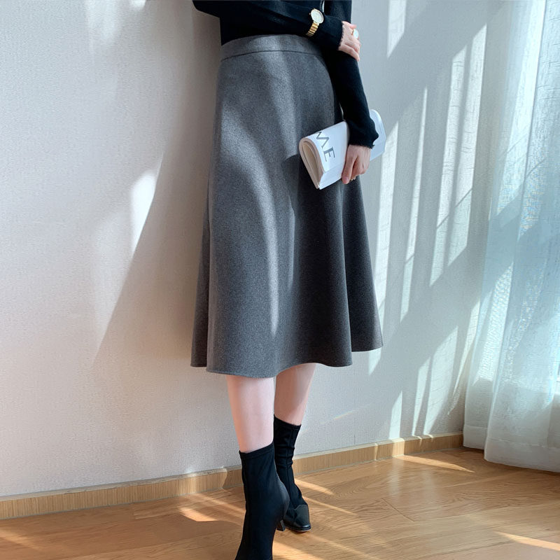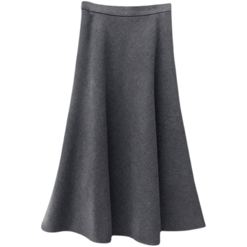 Mularsa grey extremely simple wind fur with half body dress 2021 autumn winter new high-waist temperament with long version of the umbrella skirt