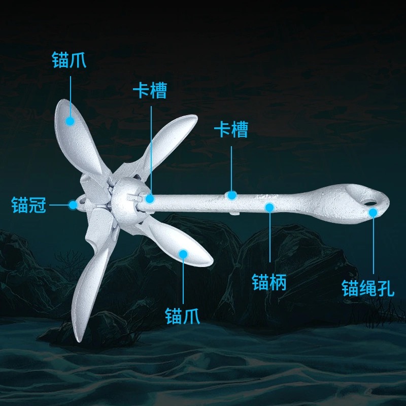 Anchor iron anchor rubber boat fishing boat special with anchor rope folding anchor galvanized boat cat